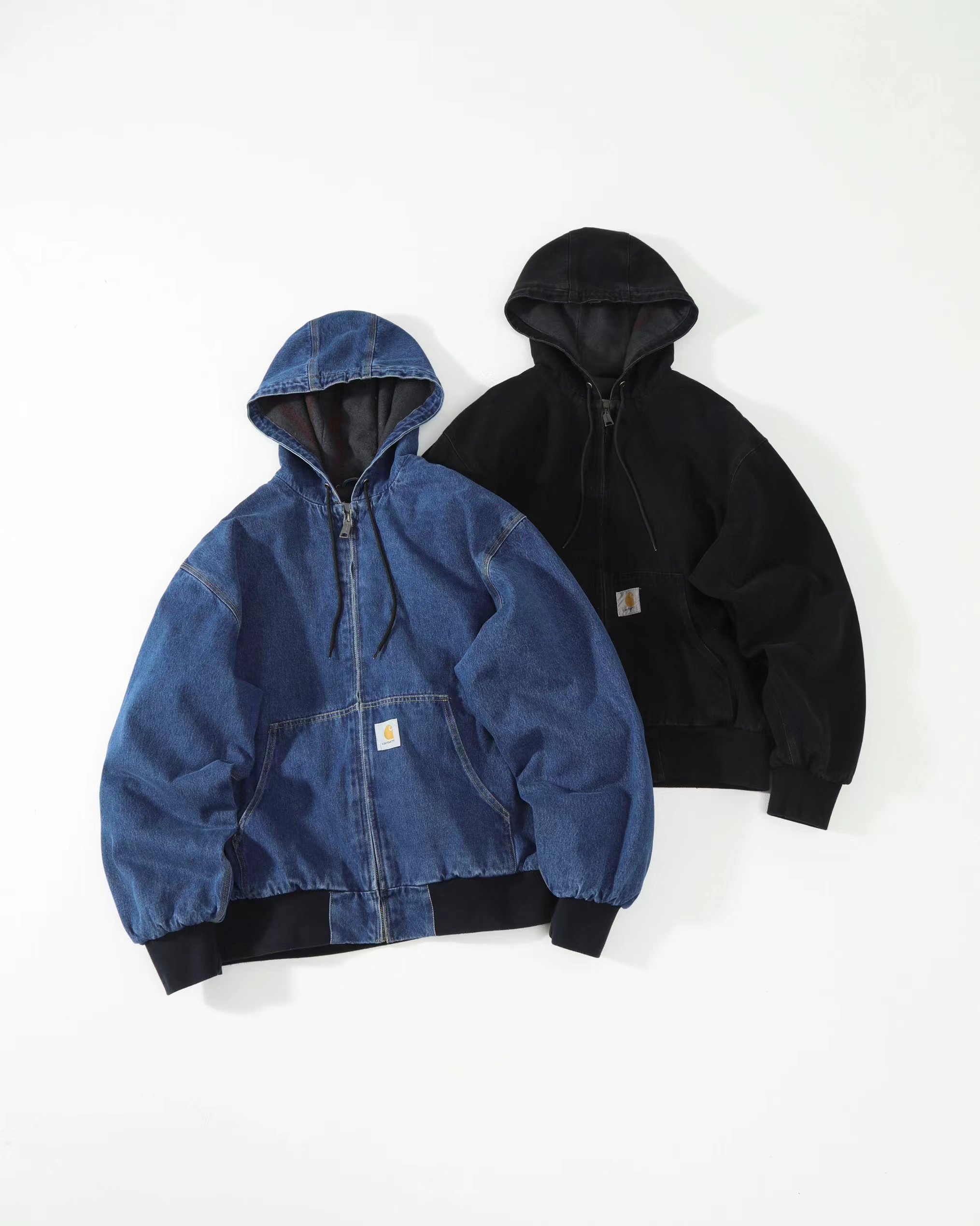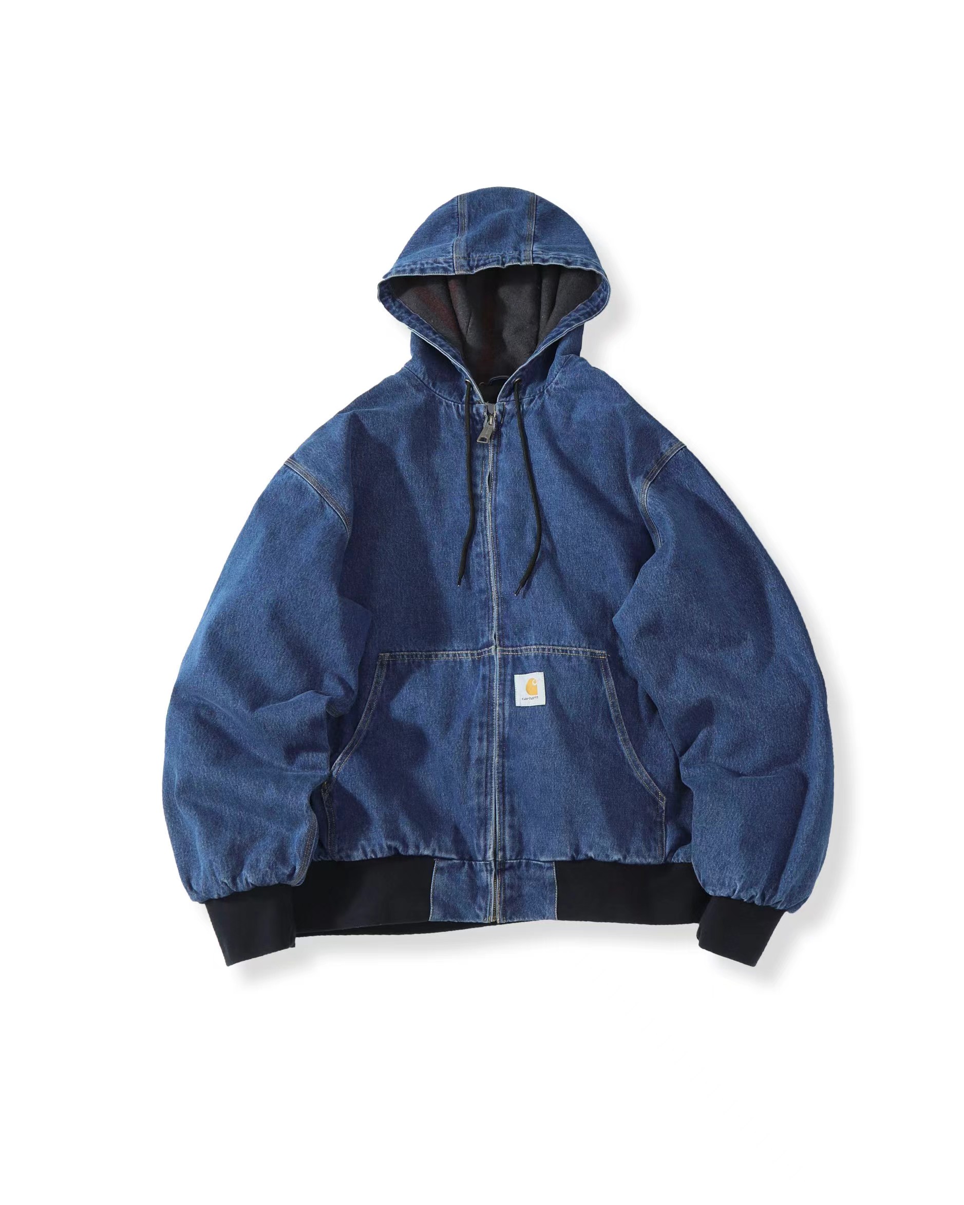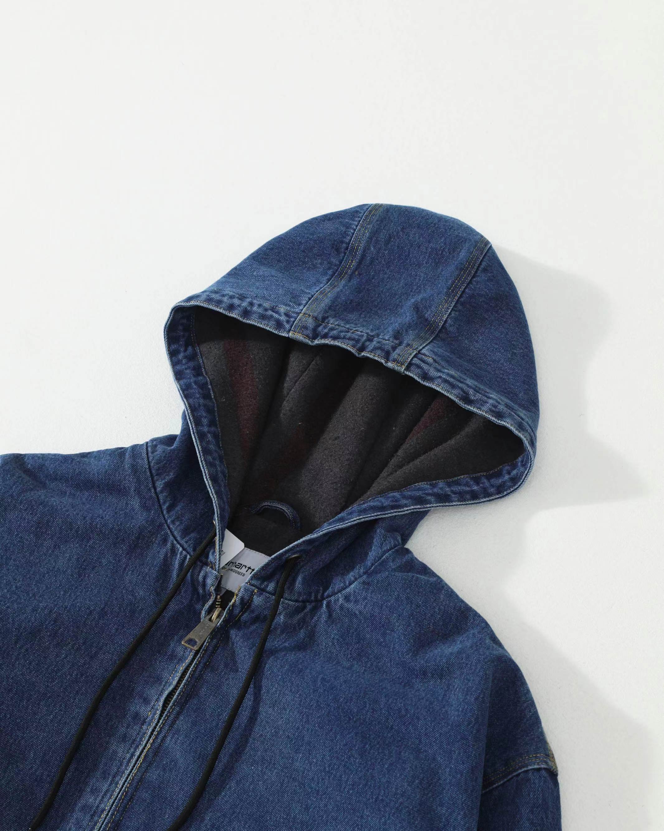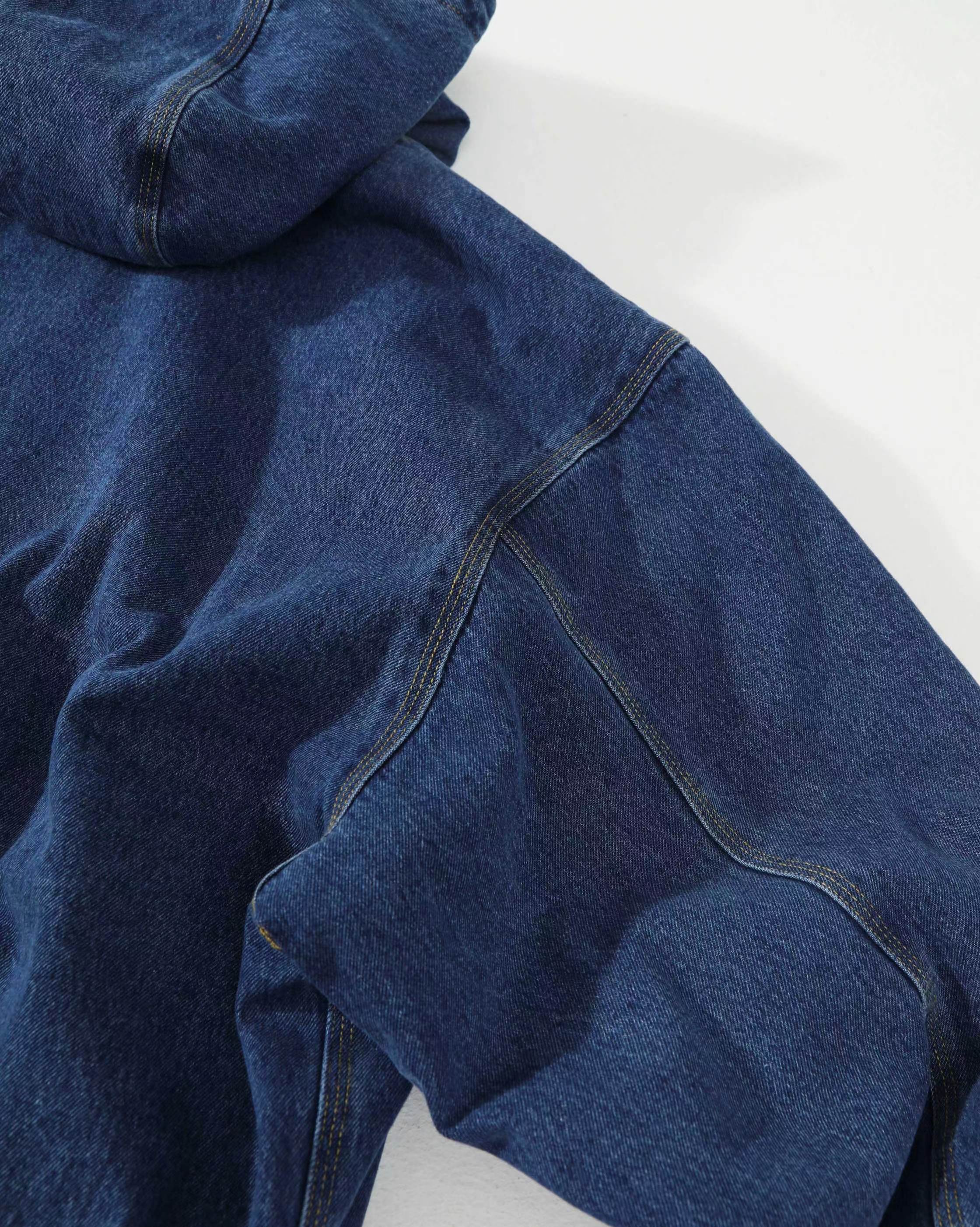 水洗做旧牛仔工装连帽夹克外套 男女同款,精典黑白LOGO贴布 标签 重磅加厚水洗牛仔面料OG版型,纯棉内里 原版复刻 辅料对版,正品级打板定制 。美式工装风 牛仔蓝色太帅了 男女都可轻松驾驭 随意百搭