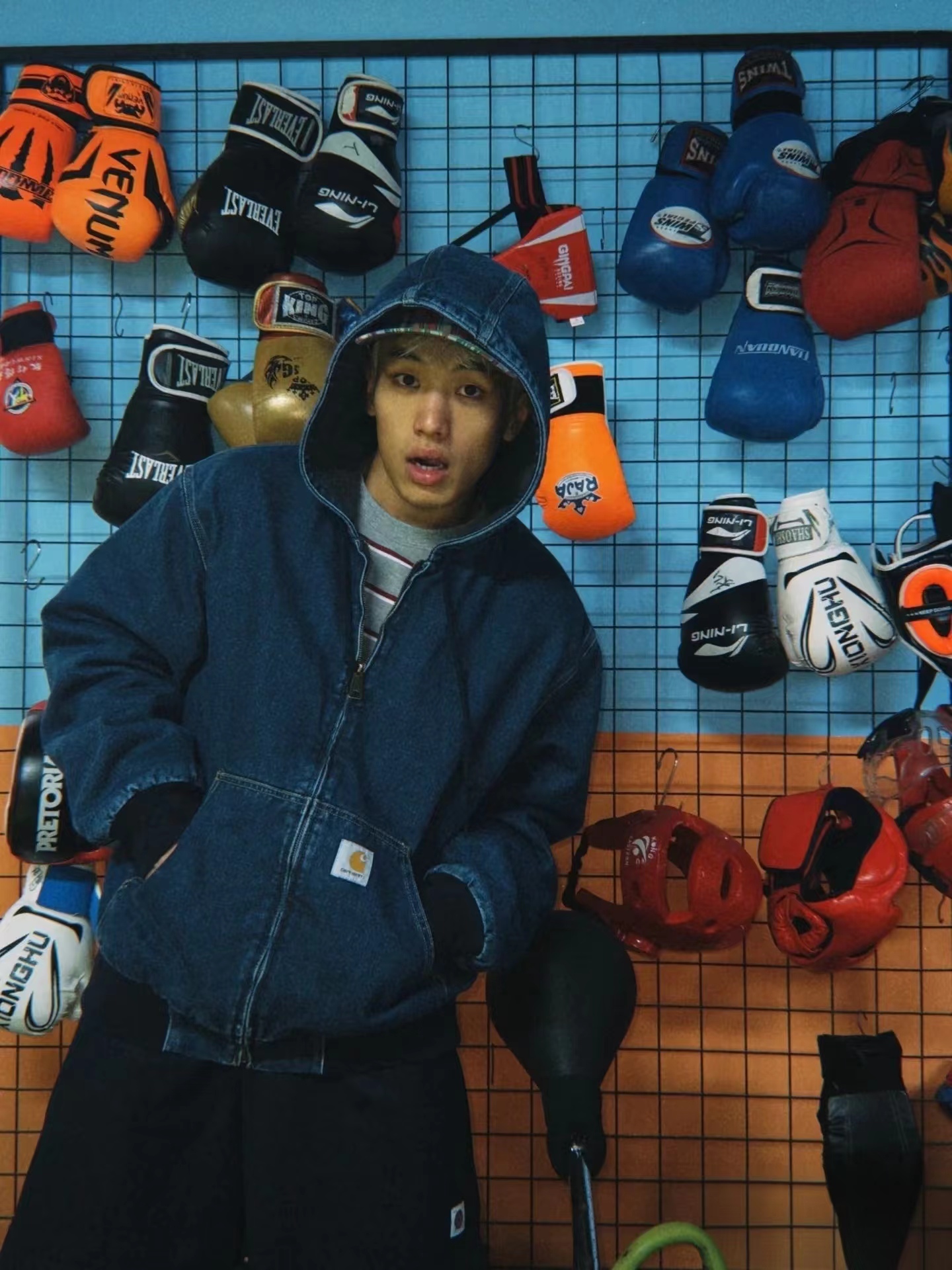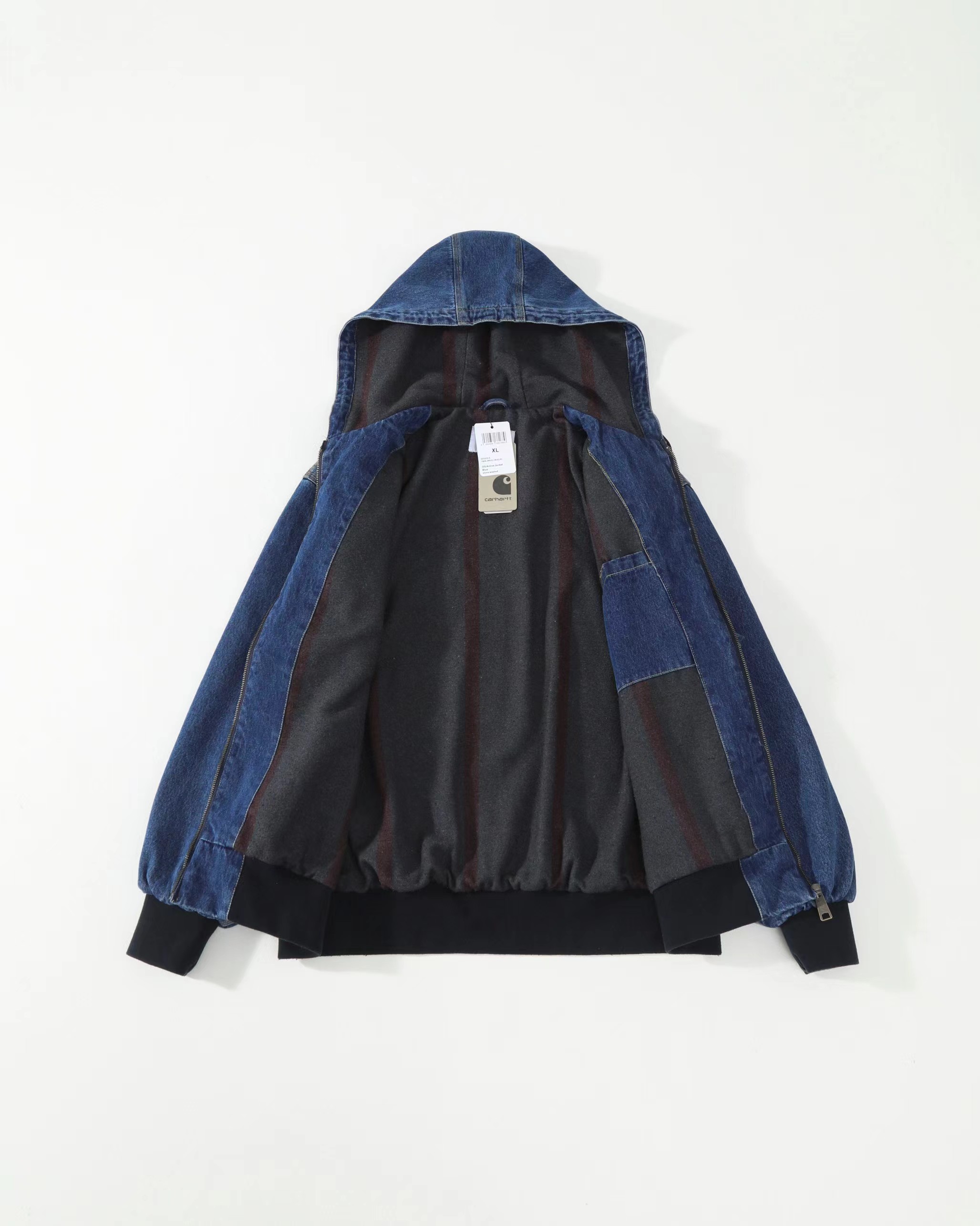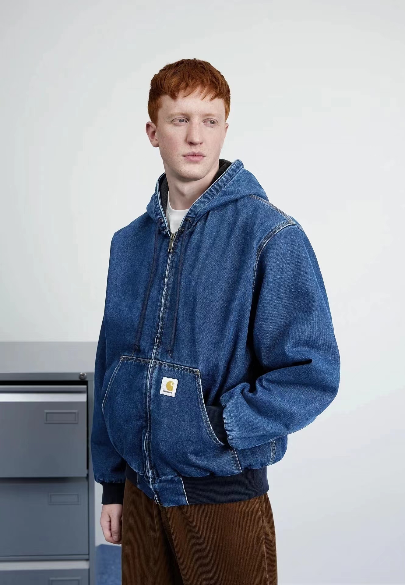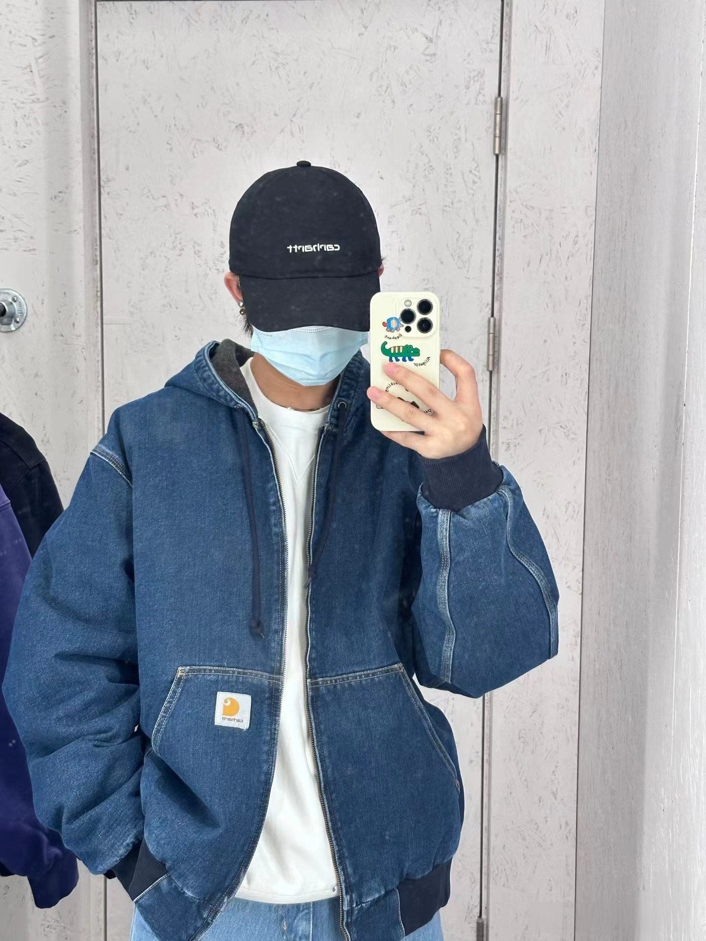 水洗做旧牛仔工装连帽夹克外套 男女同款,精典黑白LOGO贴布 标签 重磅加厚水洗牛仔面料OG版型,纯棉内里 原版复刻 辅料对版,正品级打板定制 。美式工装风 牛仔蓝色太帅了 男女都可轻松驾驭 随意百搭
