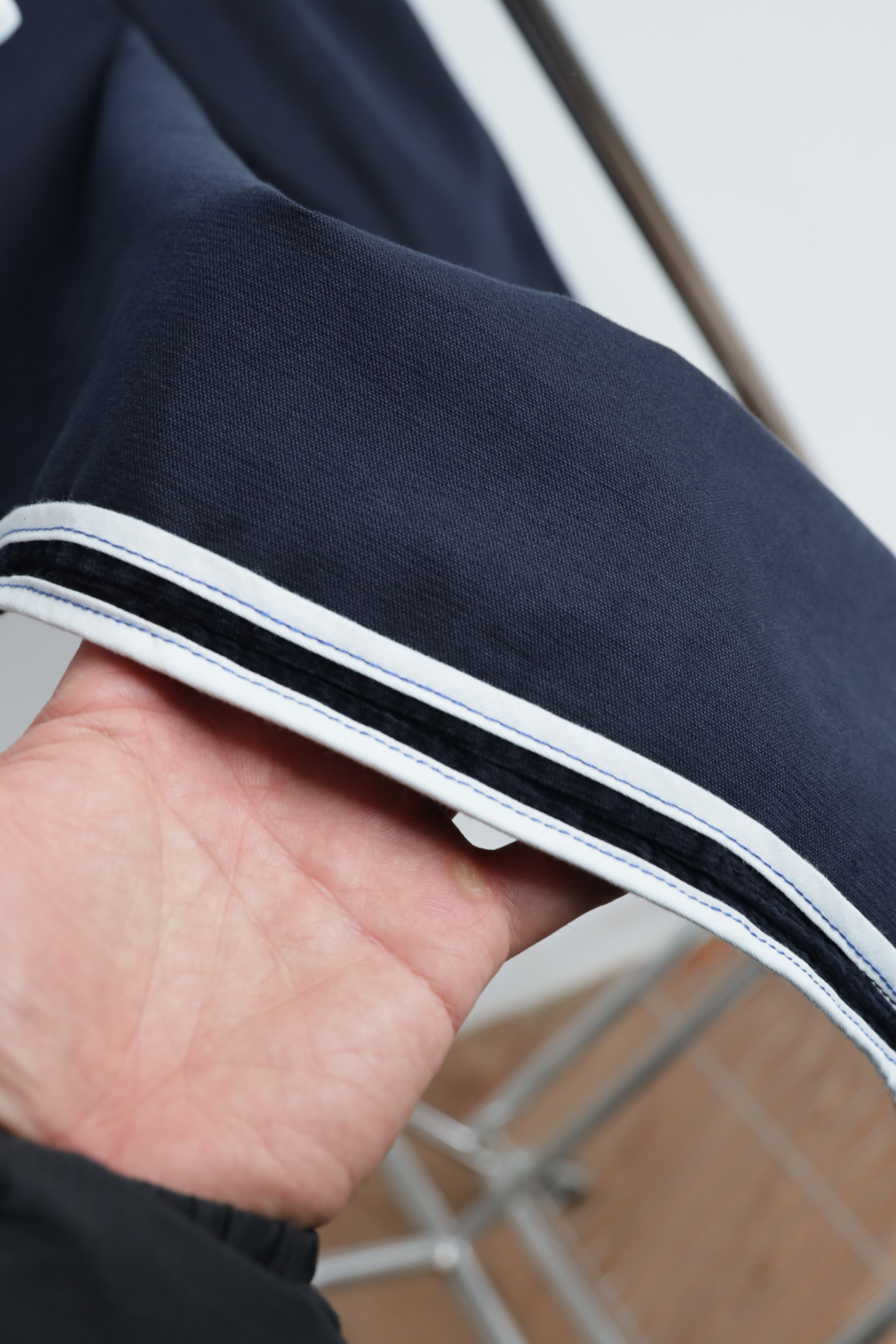 面料带少许弹性,98%棉,2%氨纶,绒光漫反射,上身非常有质感