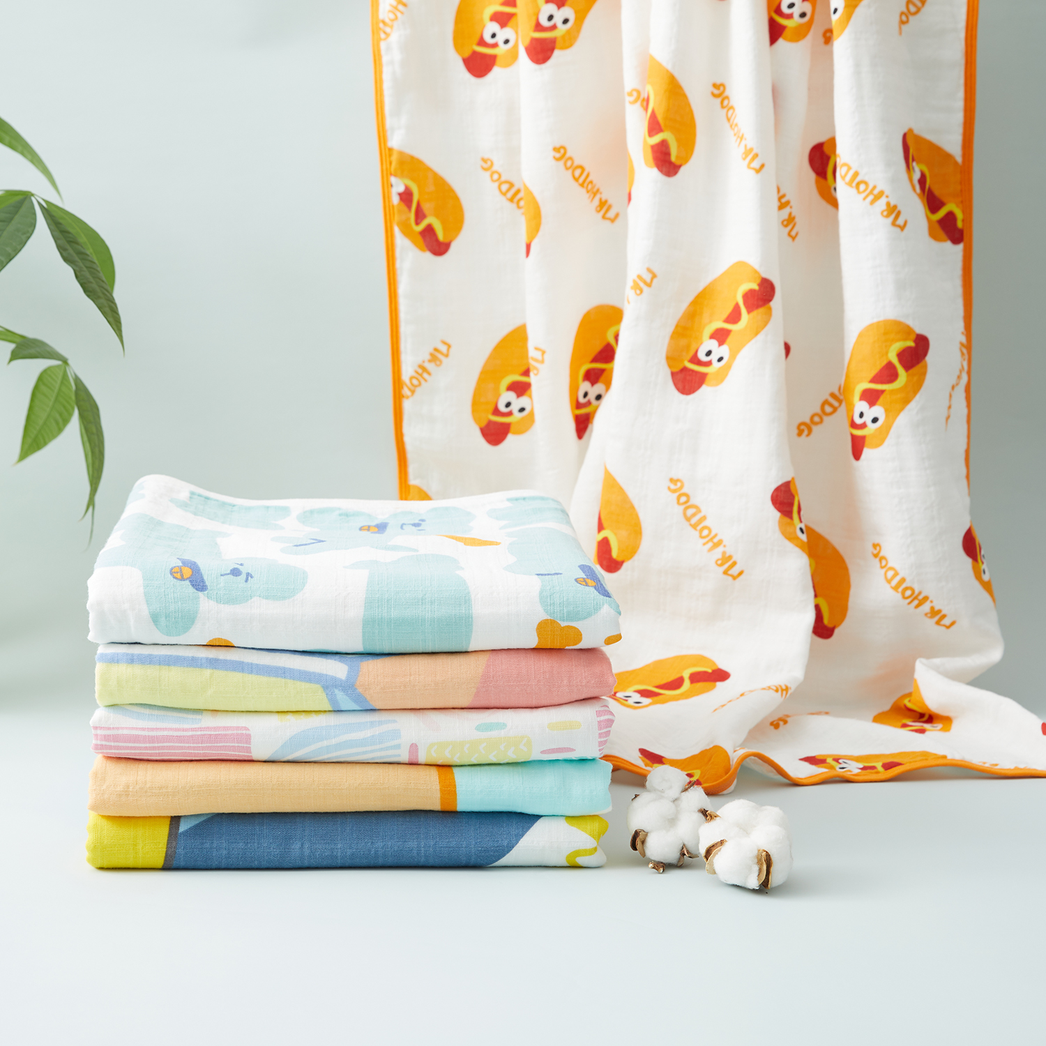 怡比纱布多功能毯(微笑彩虹/香喷喷的肉骨头/小小飞行员/小小宇航员)120*120cm(多款可选)