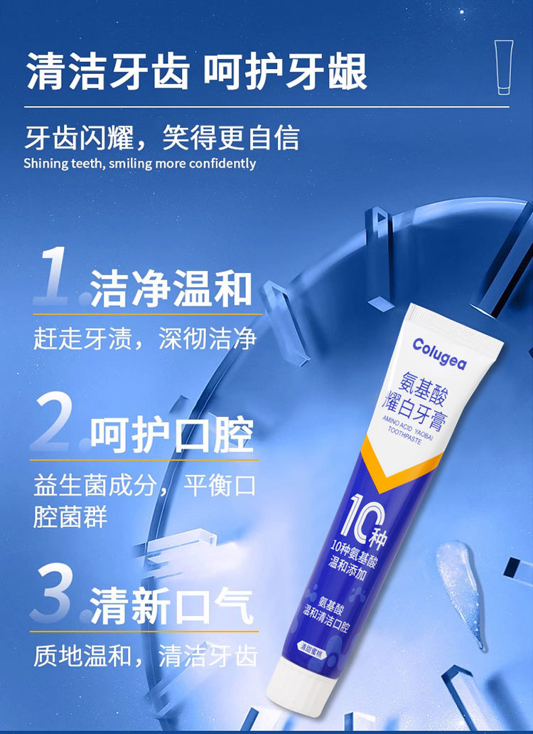 【秒杀❗️9.9秒2支🔥氨基酸耀白牙膏】10重氨基酸精华配方 每次刷牙都像做SPA 口腔清洁去牙渍烟渍牙膏口气清新益生菌亮白正品粉丝专享