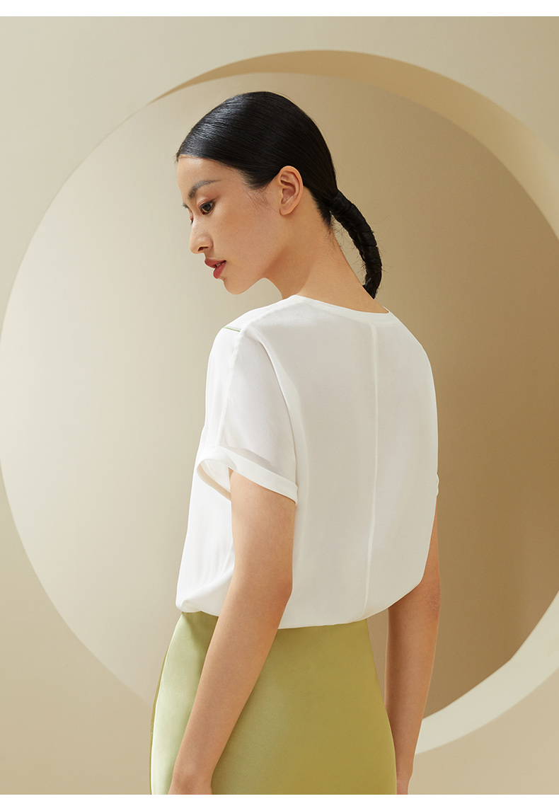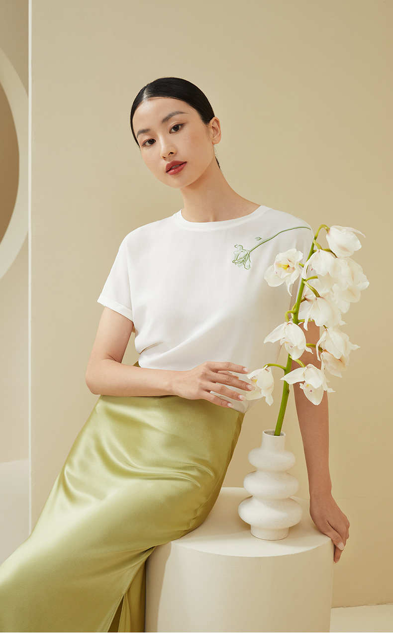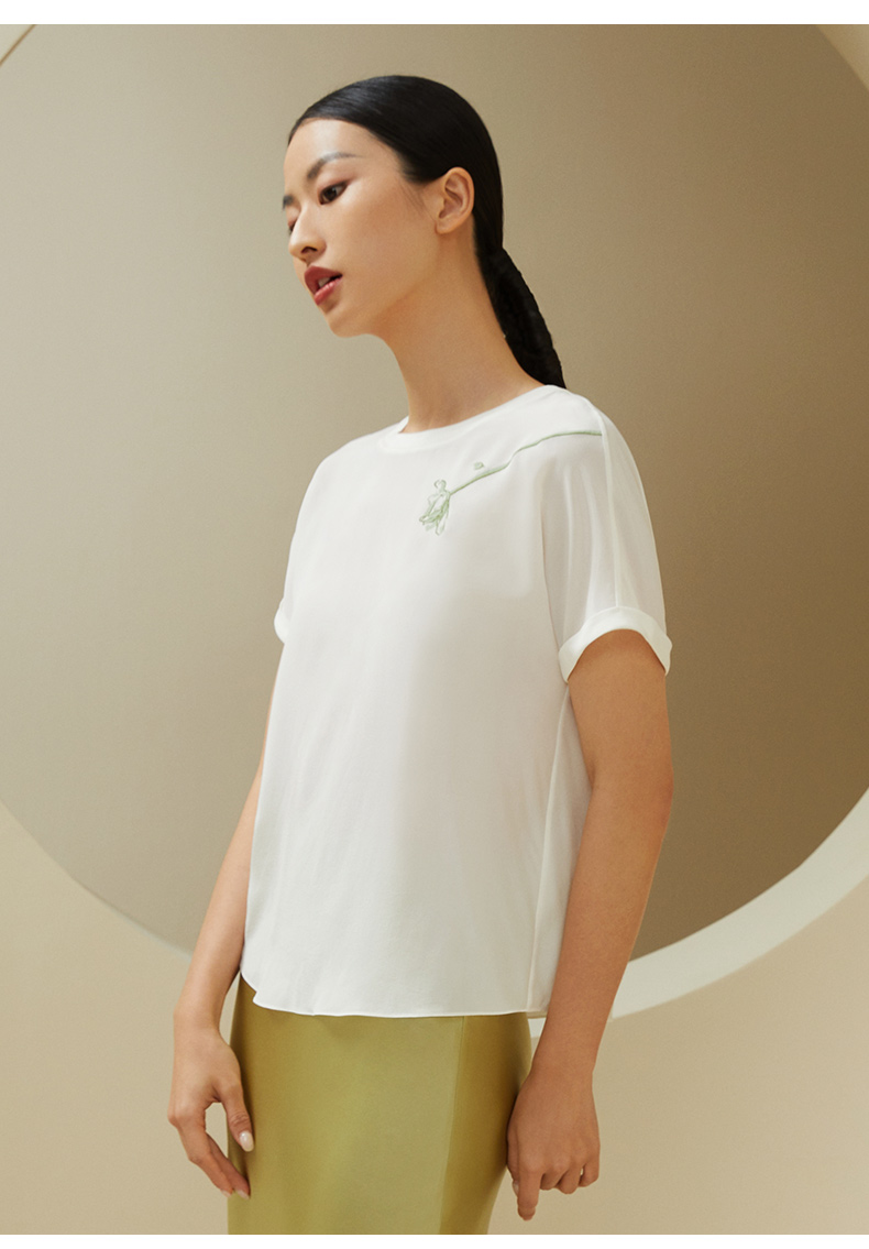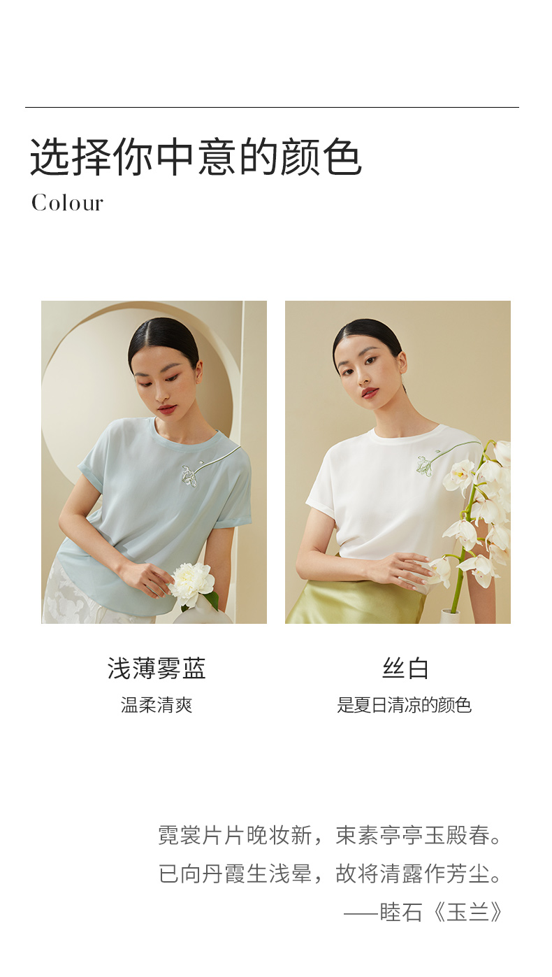 【不易皱的真丝】金三塔100%桑蚕丝玉兰花印花女士上衣时尚舒适外穿T YSFDA701