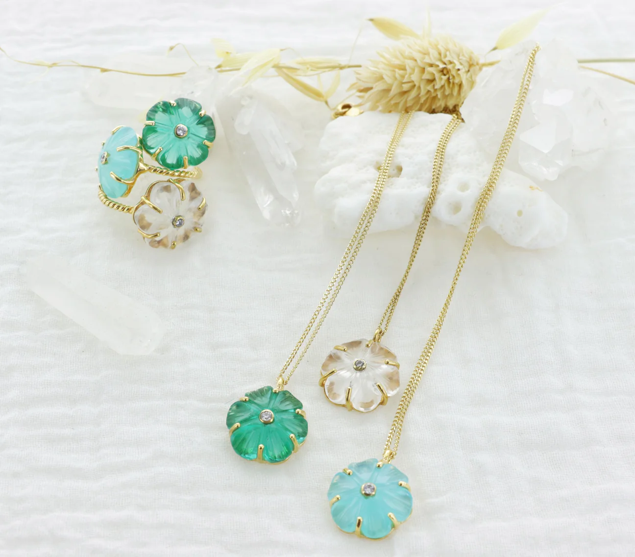 北京仓|Leticia Ponti-Iris-水蓝色 玉髓 花朵 戒指[法国设计师]