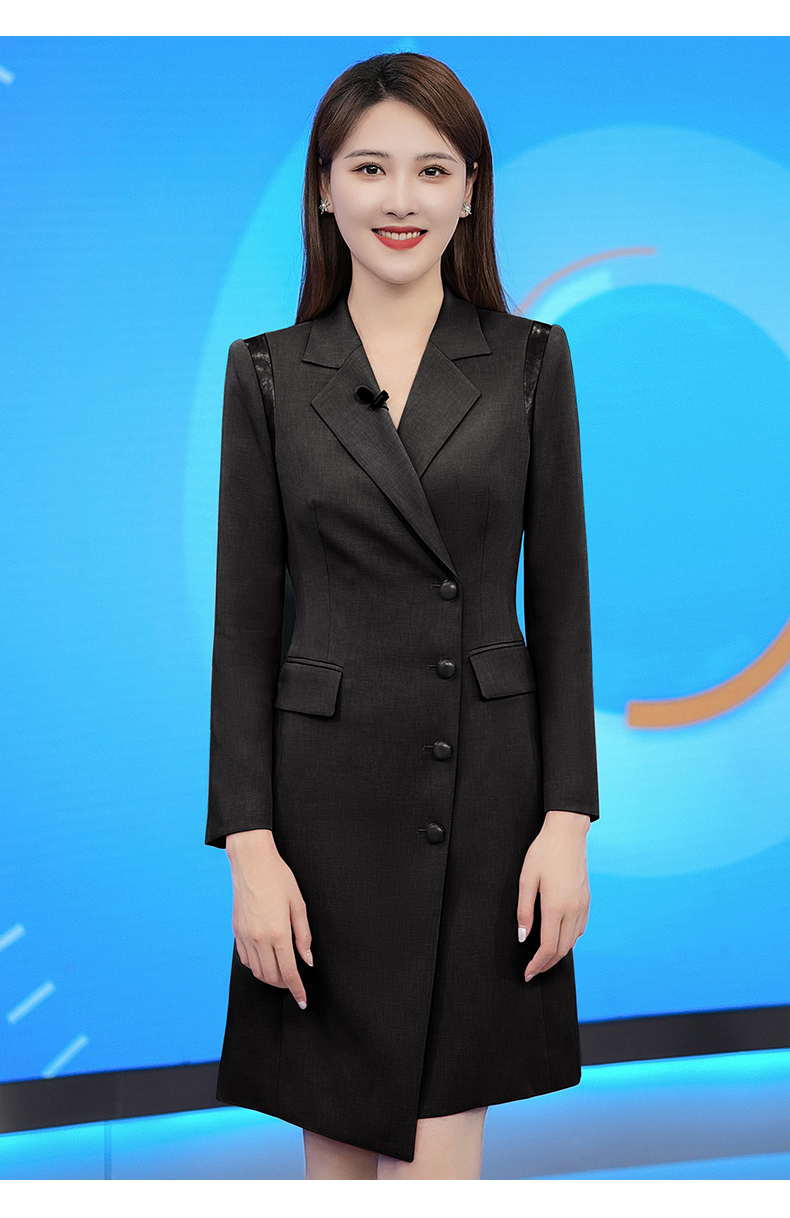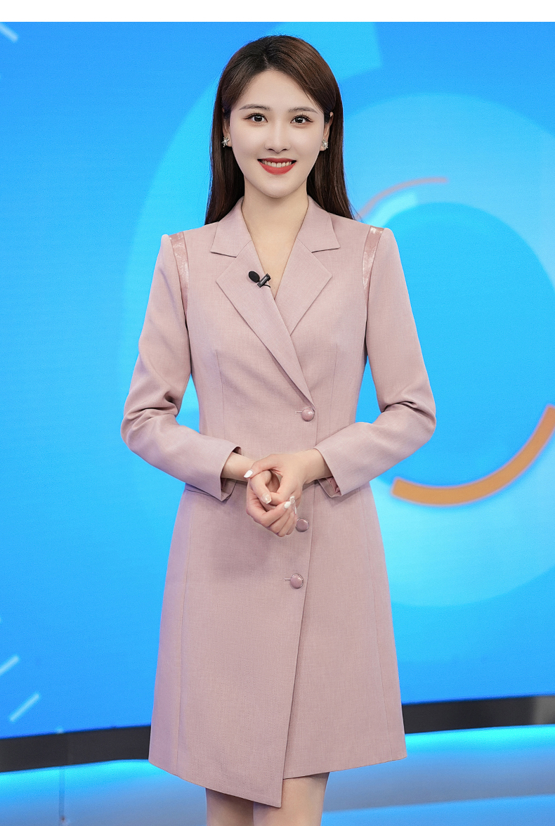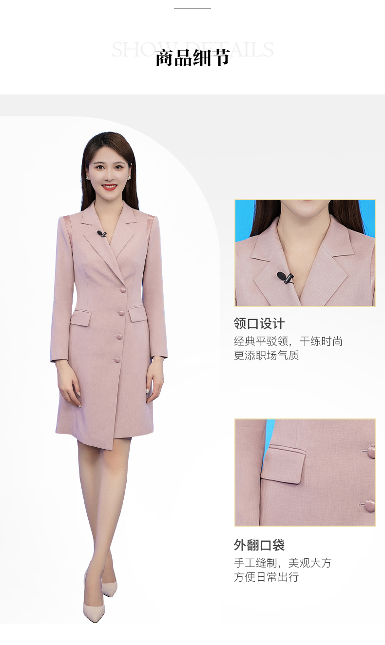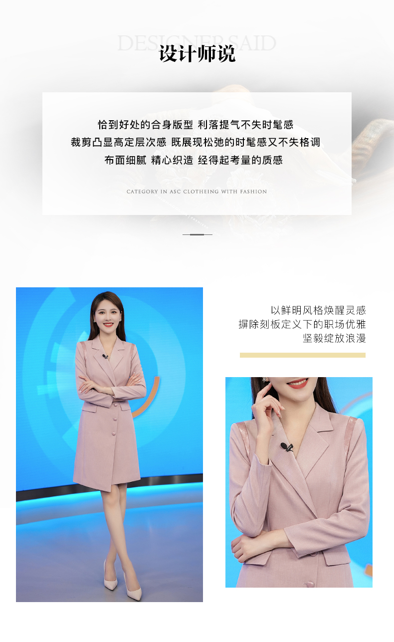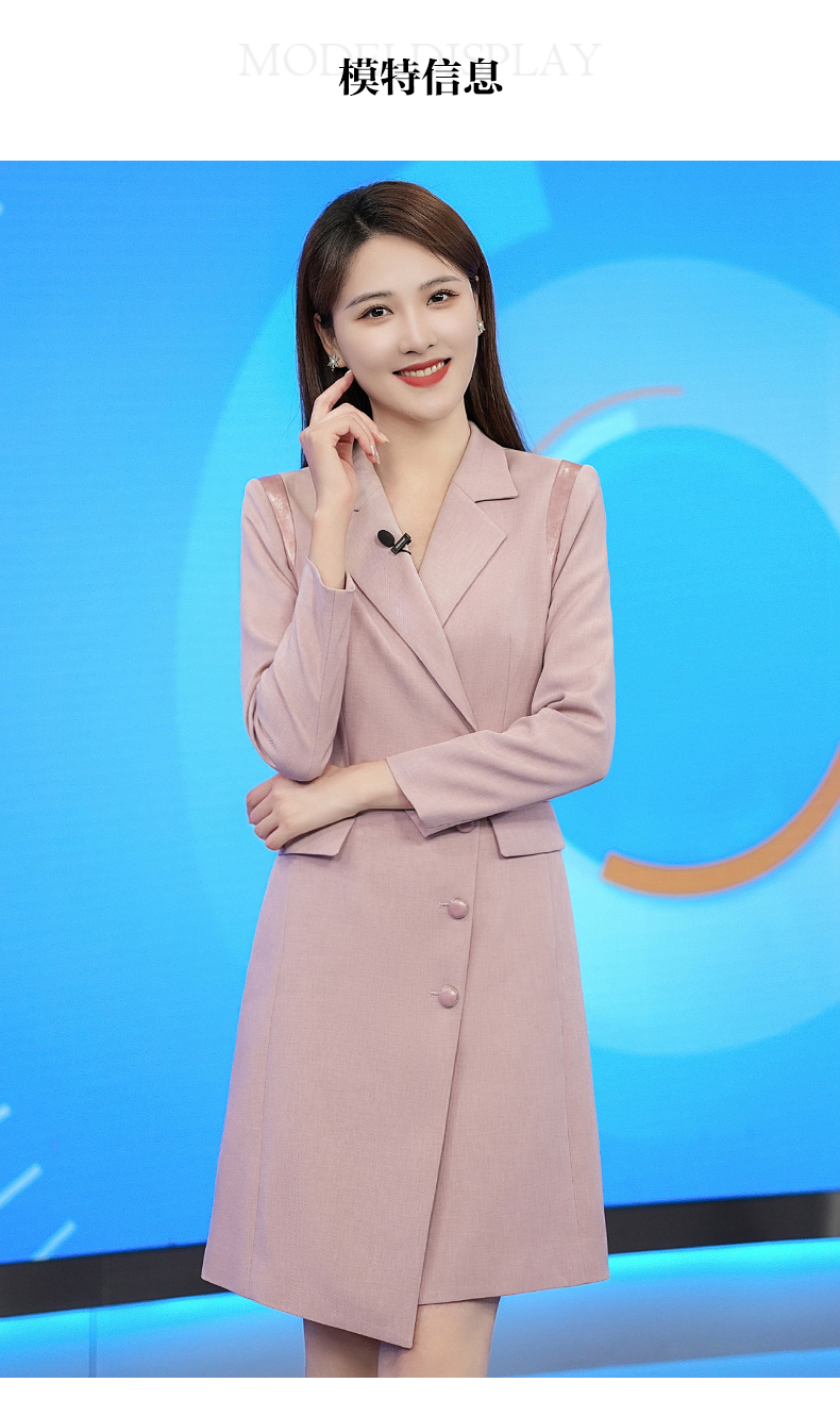 高端时尚粉色OL通勤连衣裙女长袖艺考主持人西装裙气质职业装秋季