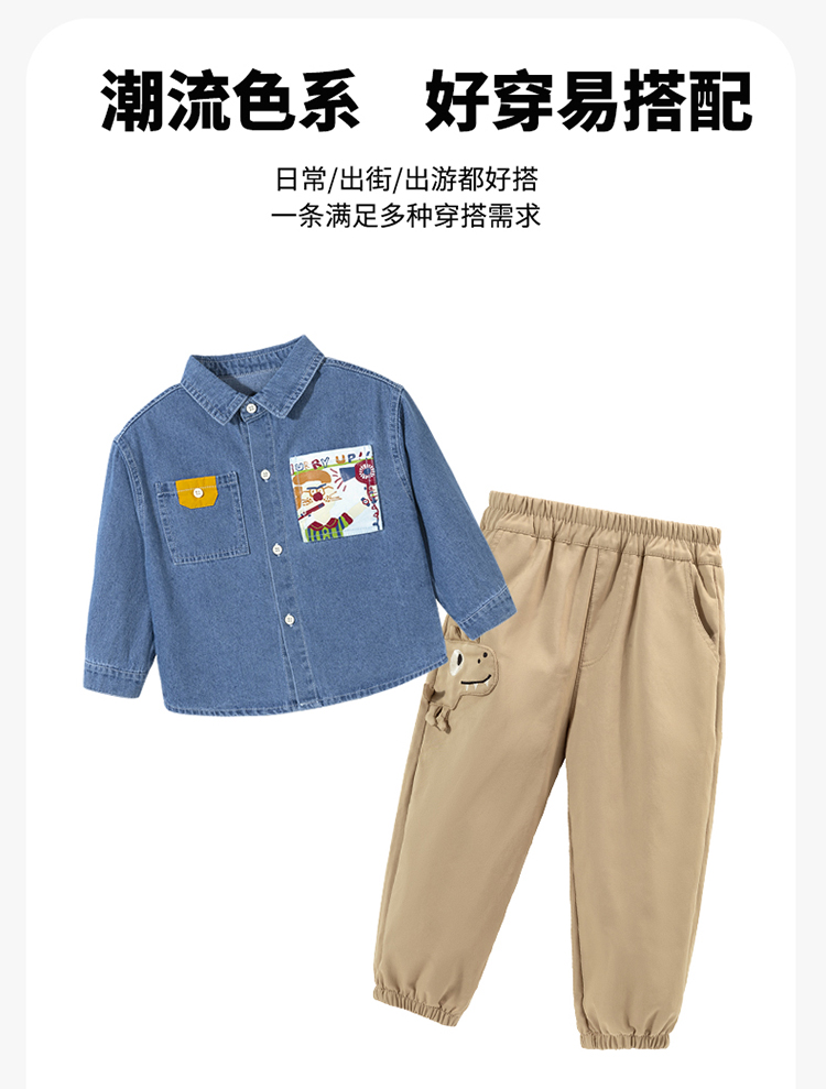 贝贝怡男童裤子24秋装童趣简约休闲百搭柔顺婴幼宝宝长裤ZB3DK037