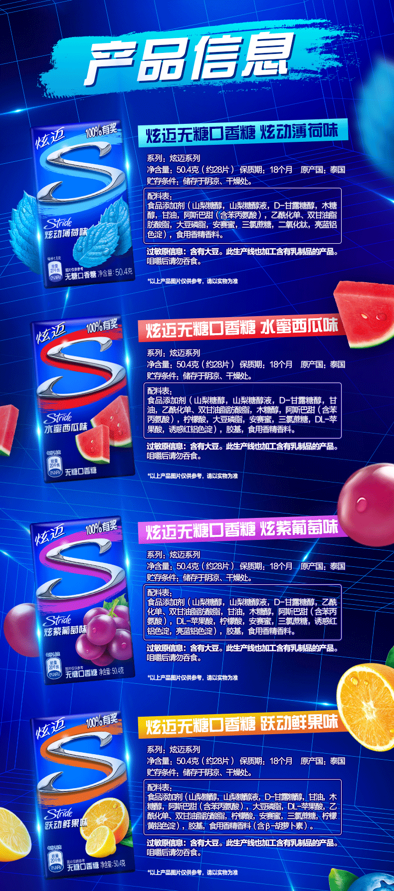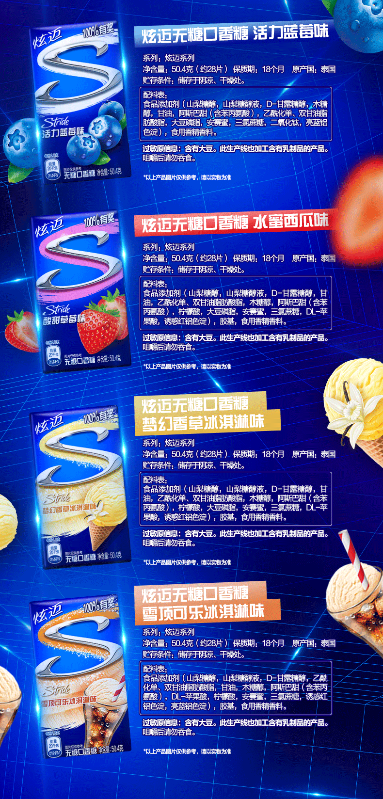 炫迈梦幻香草冰淇淋味无糖口香糖28片 50.4g