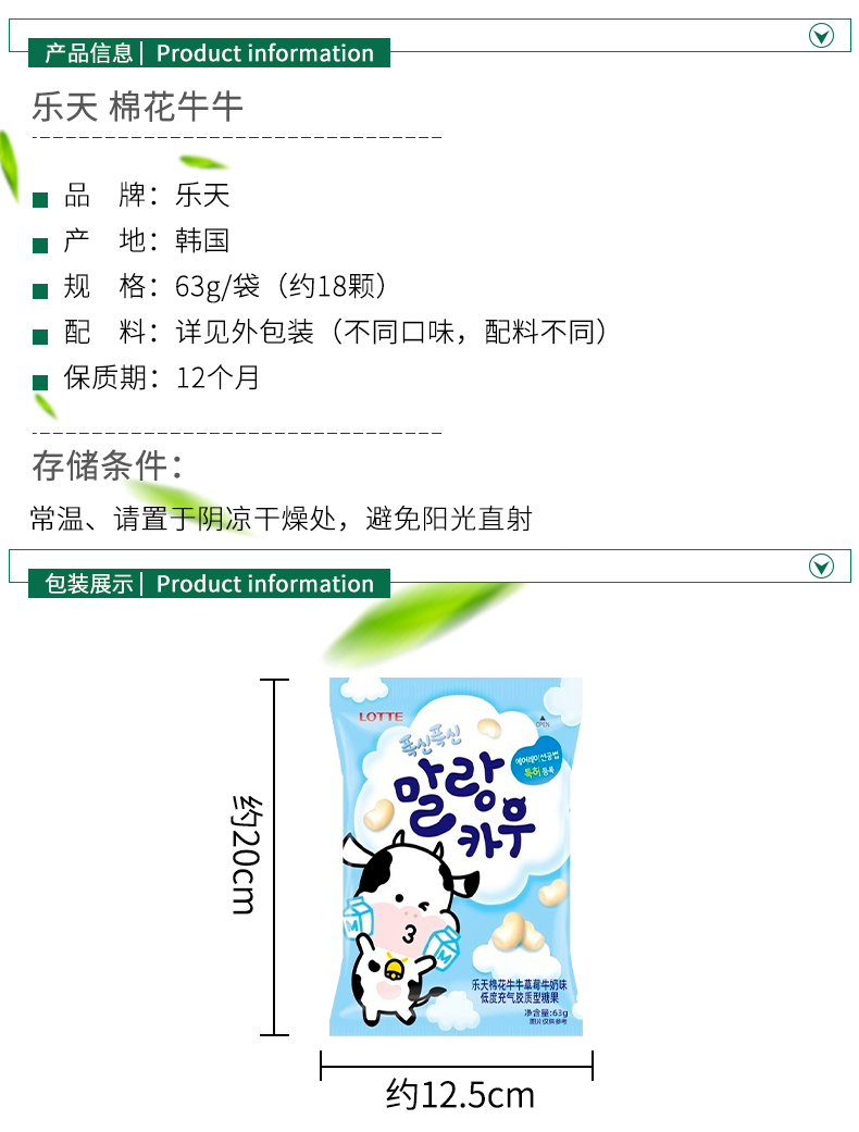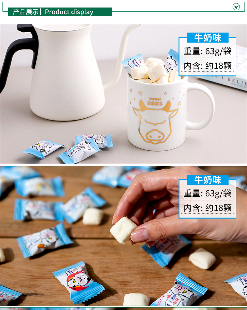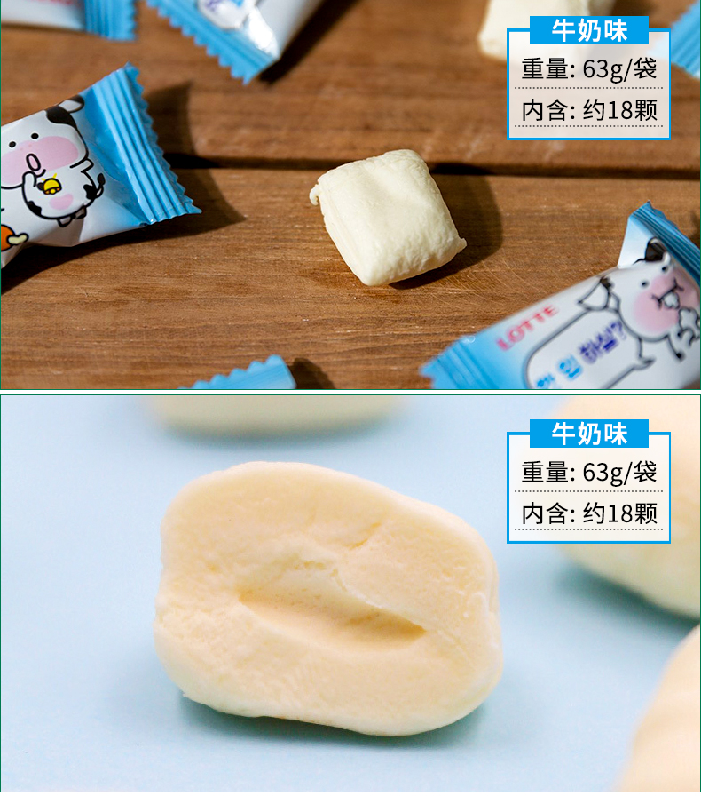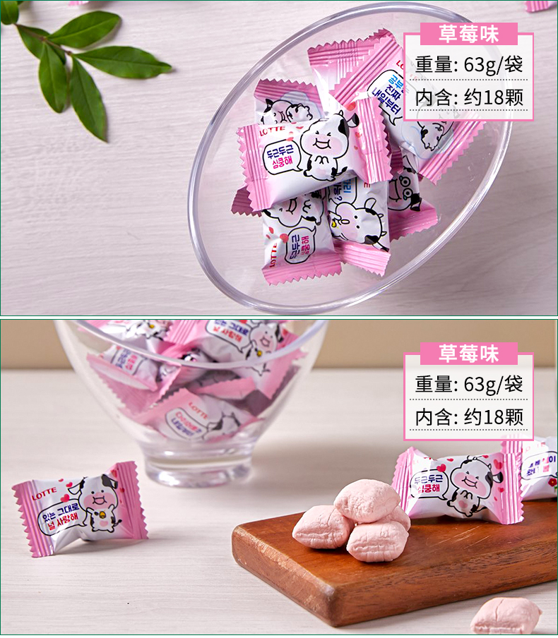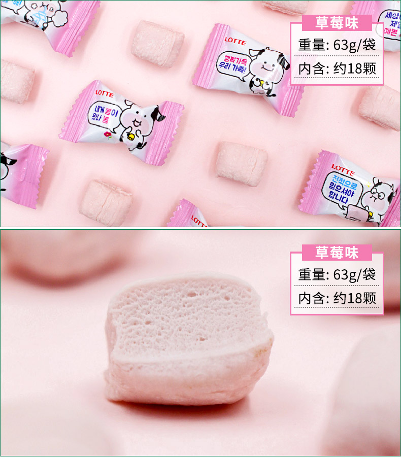 韩国进口乐天草莓牛奶味棉花牛牛软糖63g
