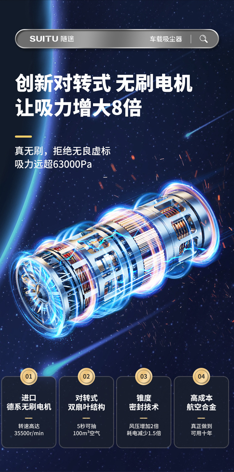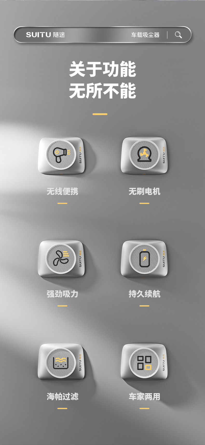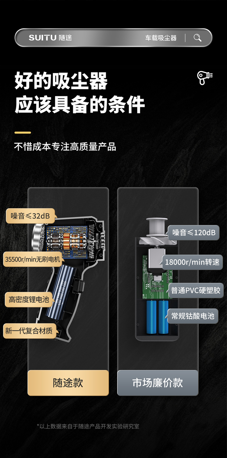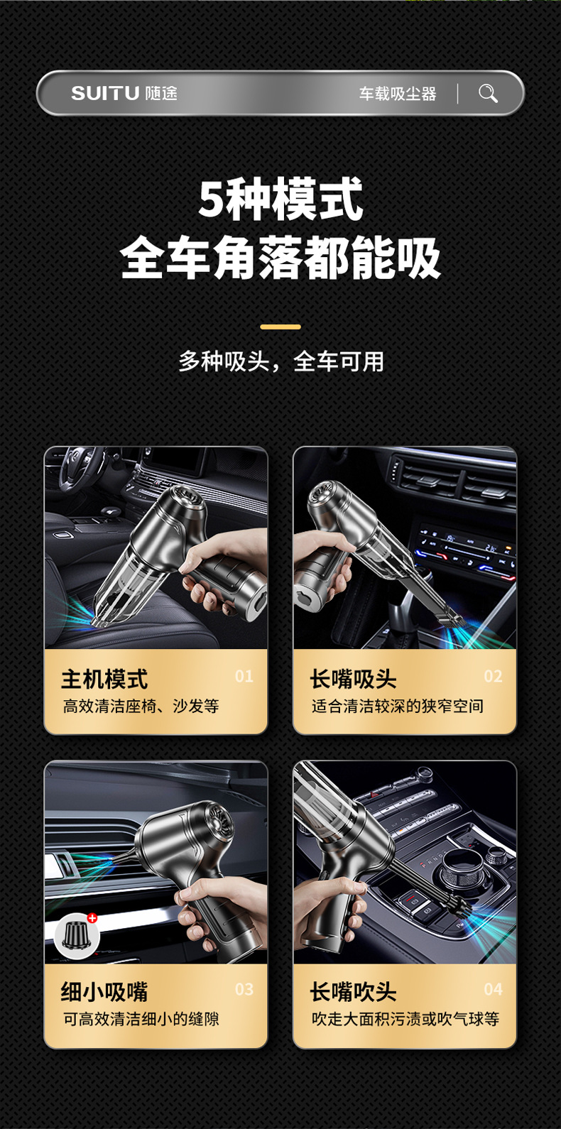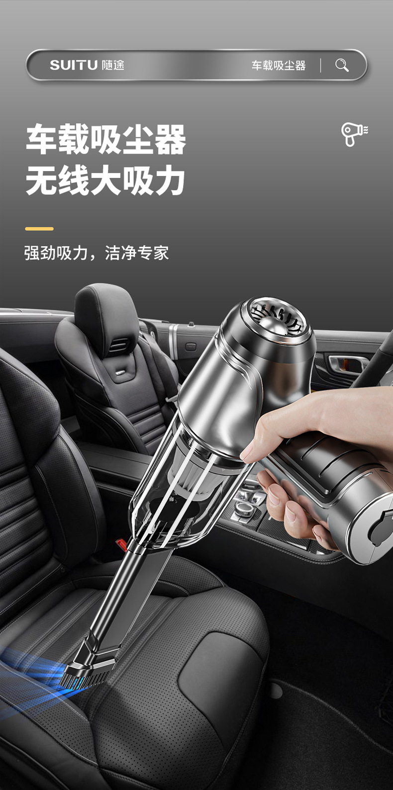 SUITU随途 车载吸尘器无刷电机大功率 无线手持式家用吸尘器 ST-6645