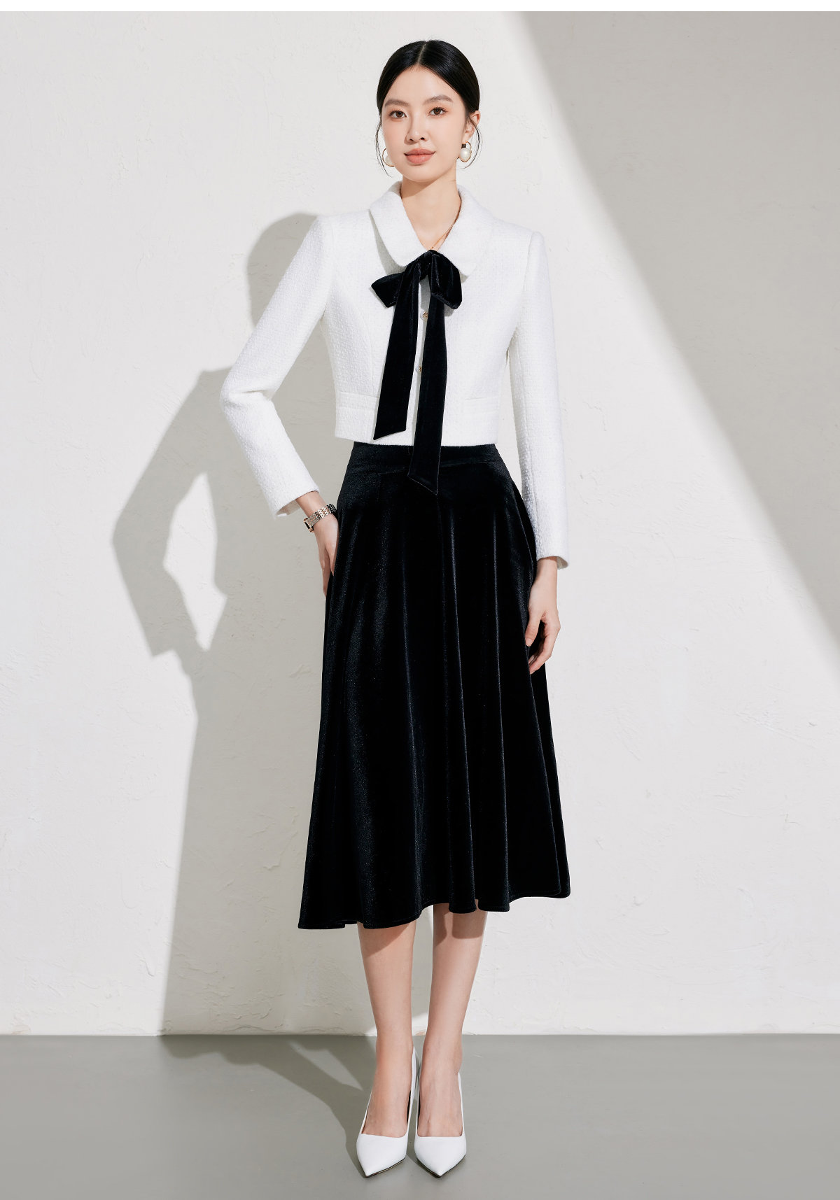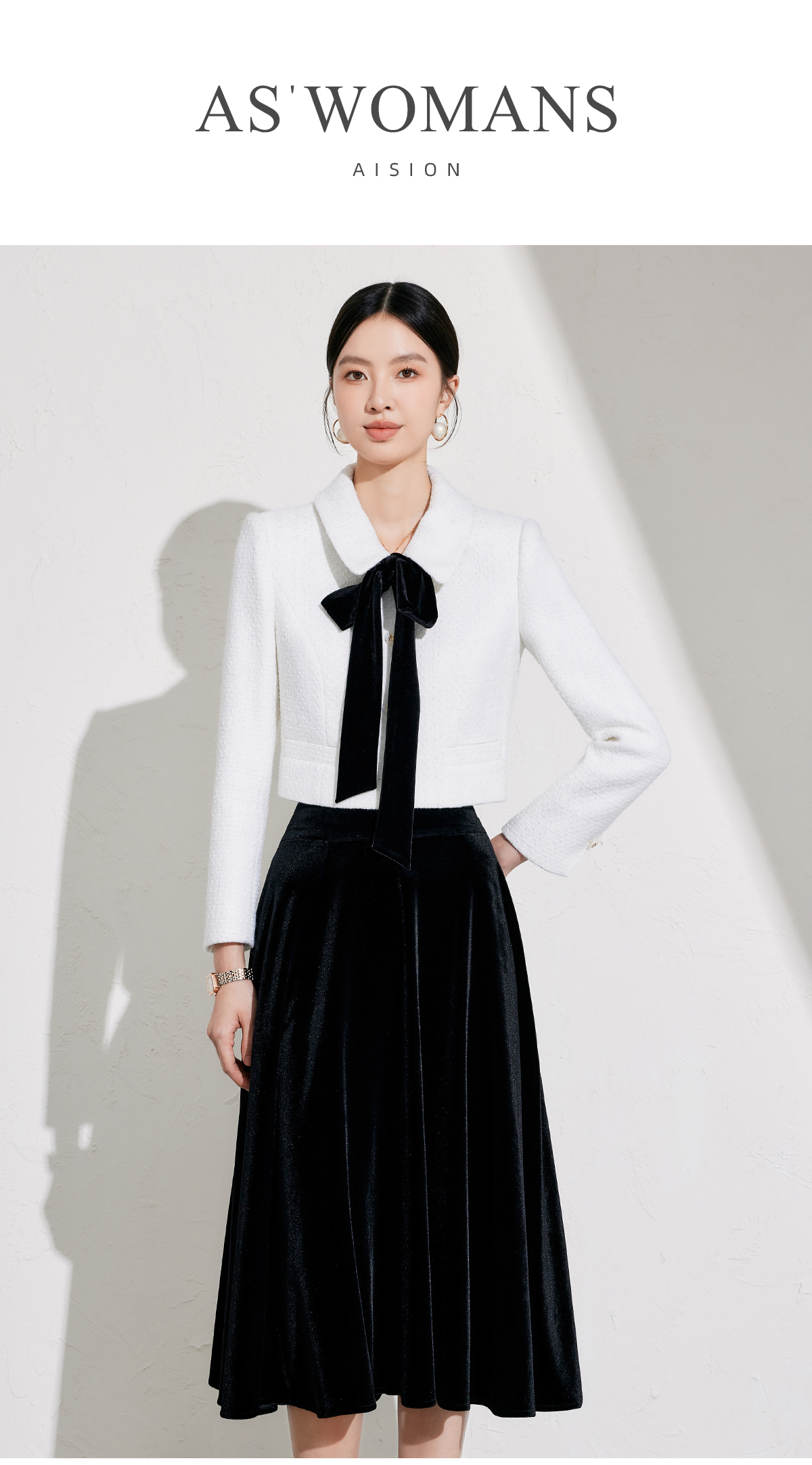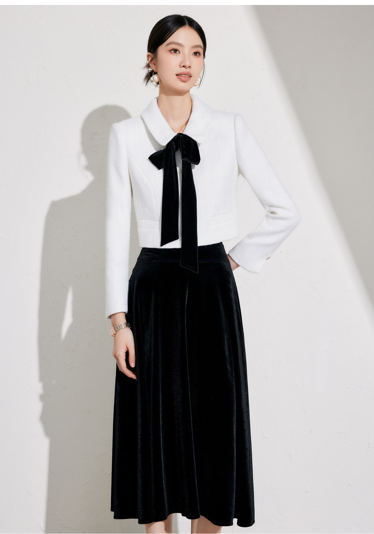 小香风套装2026冬新款时尚白色羊毛上衣