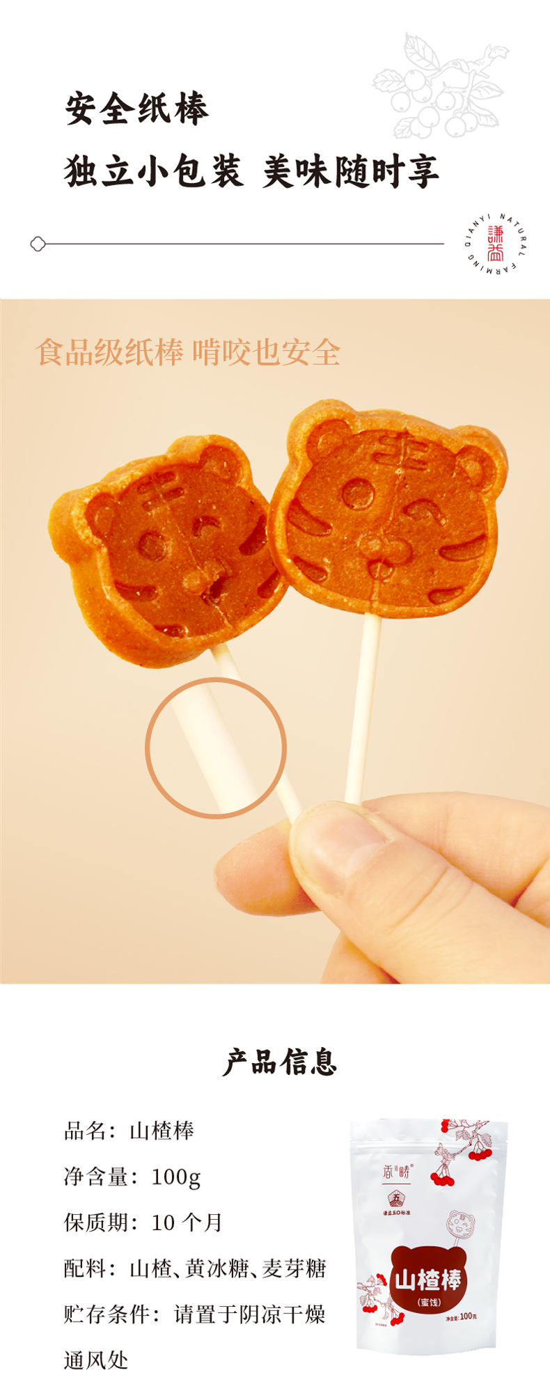 谦益香畴 本味山楂棒100g 生态山楂 鲜果打浆 酸甜软糯 饭后解腻 茶点甜点 便携即食 健康零食