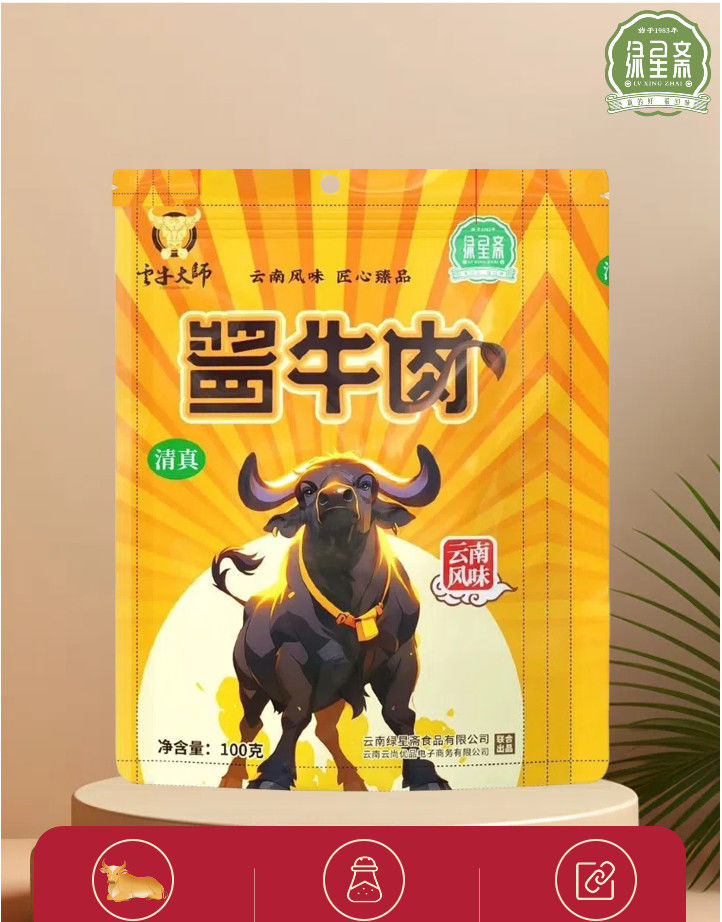 寻牛客酱牛肉100克装,云南绿星斋清真食品