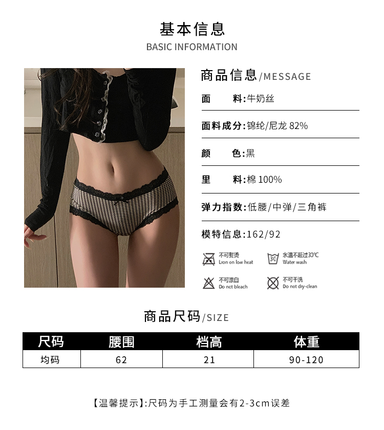 日系千鸟格性感蕾丝内裤 女低腰三角裤 牛奶丝清肤面料 纯棉内档透气不闷性感蝴蝶结格子清新打底裤均码