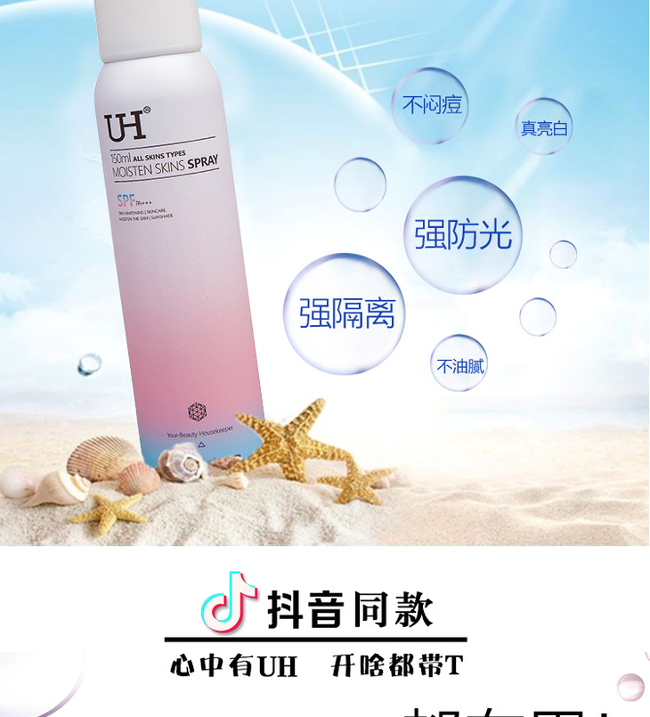 〖抖音同款〗uh防晒喷雾 150ml 网红定妆素颜水光润珠隔离补水保湿