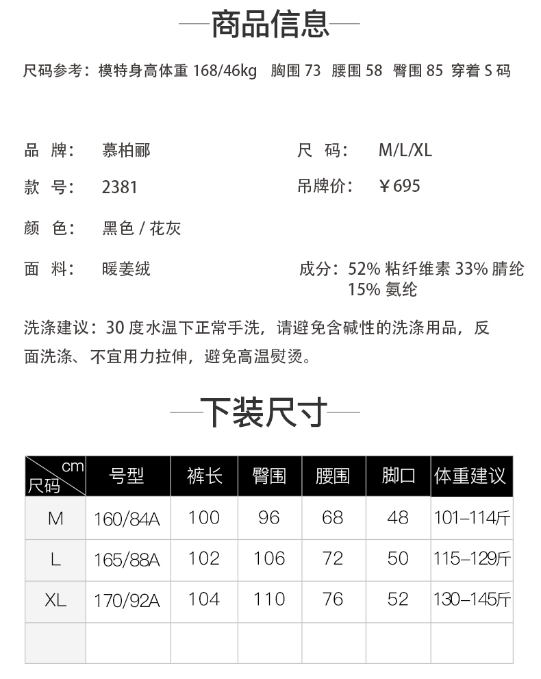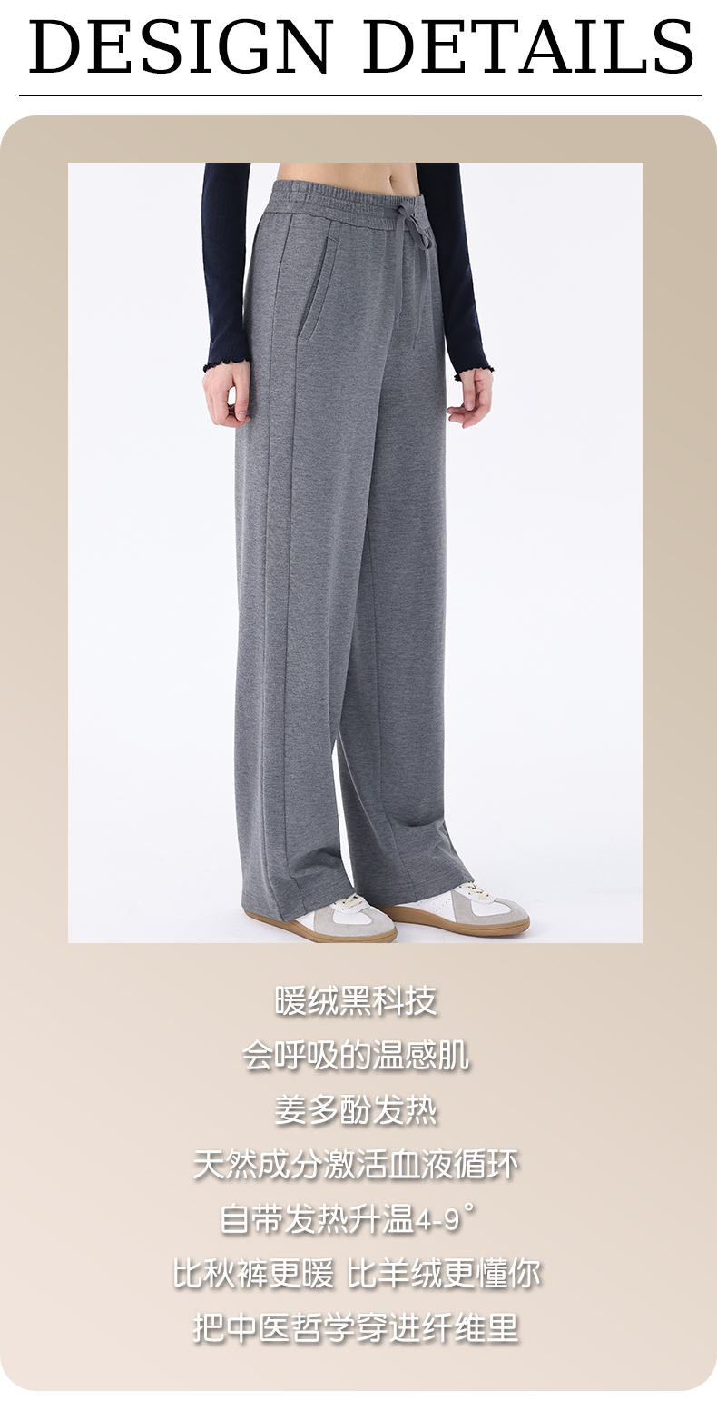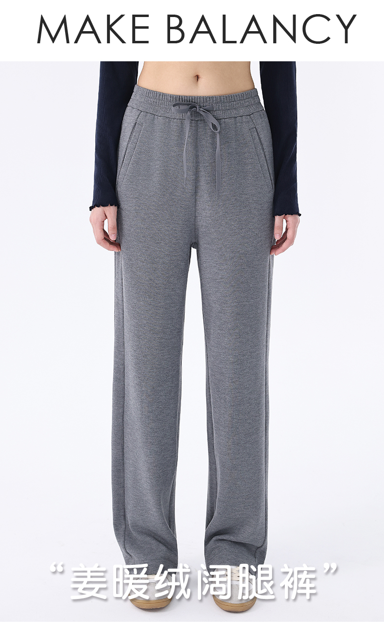 慕柏郦高腰直筒裤保暖松紧腰运动长裤2381
