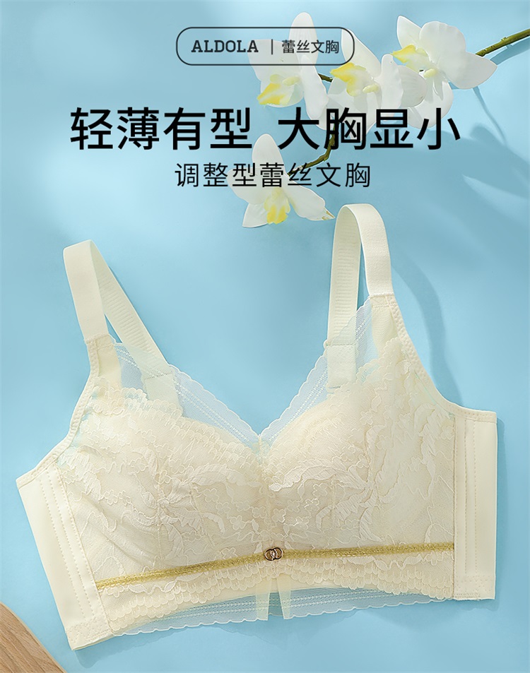 雅黛丽内衣女薄款大胸显小蕾丝舒适文胸亲肤透气调整型女士胸罩