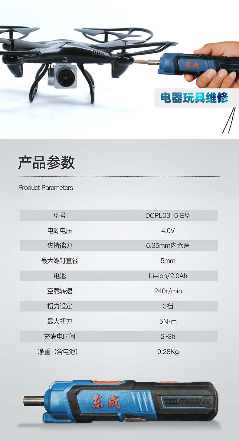 4V充电式直柄起子机(东成) DCPL03-5E