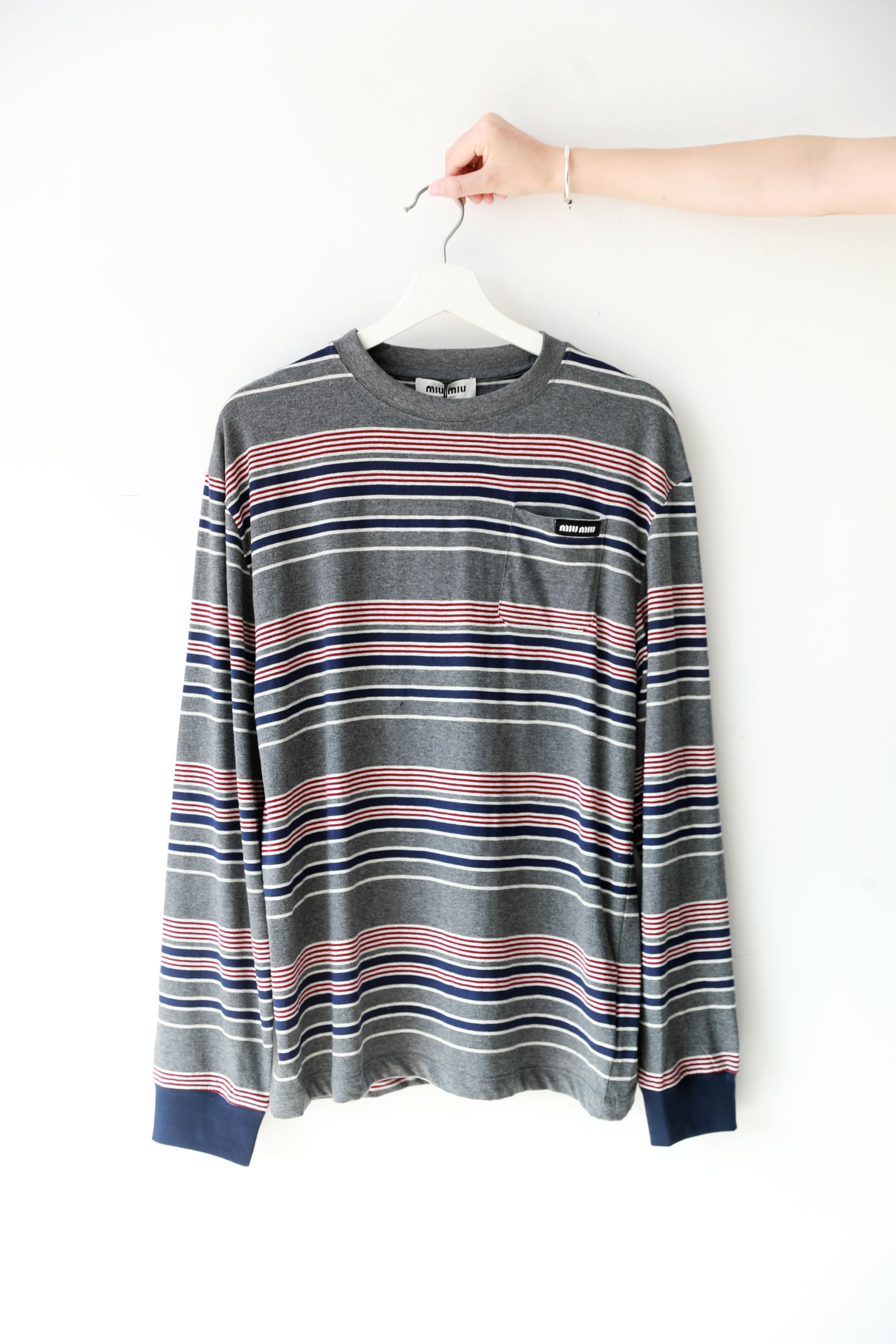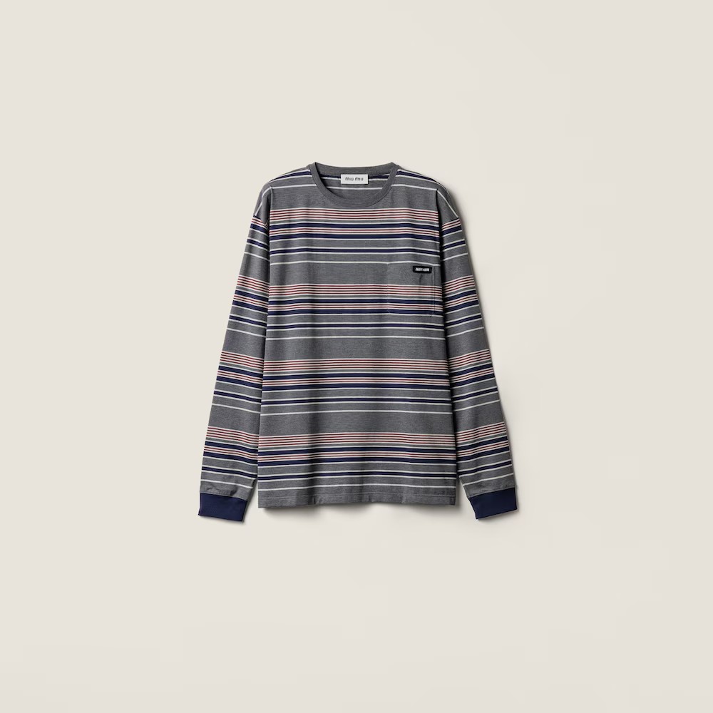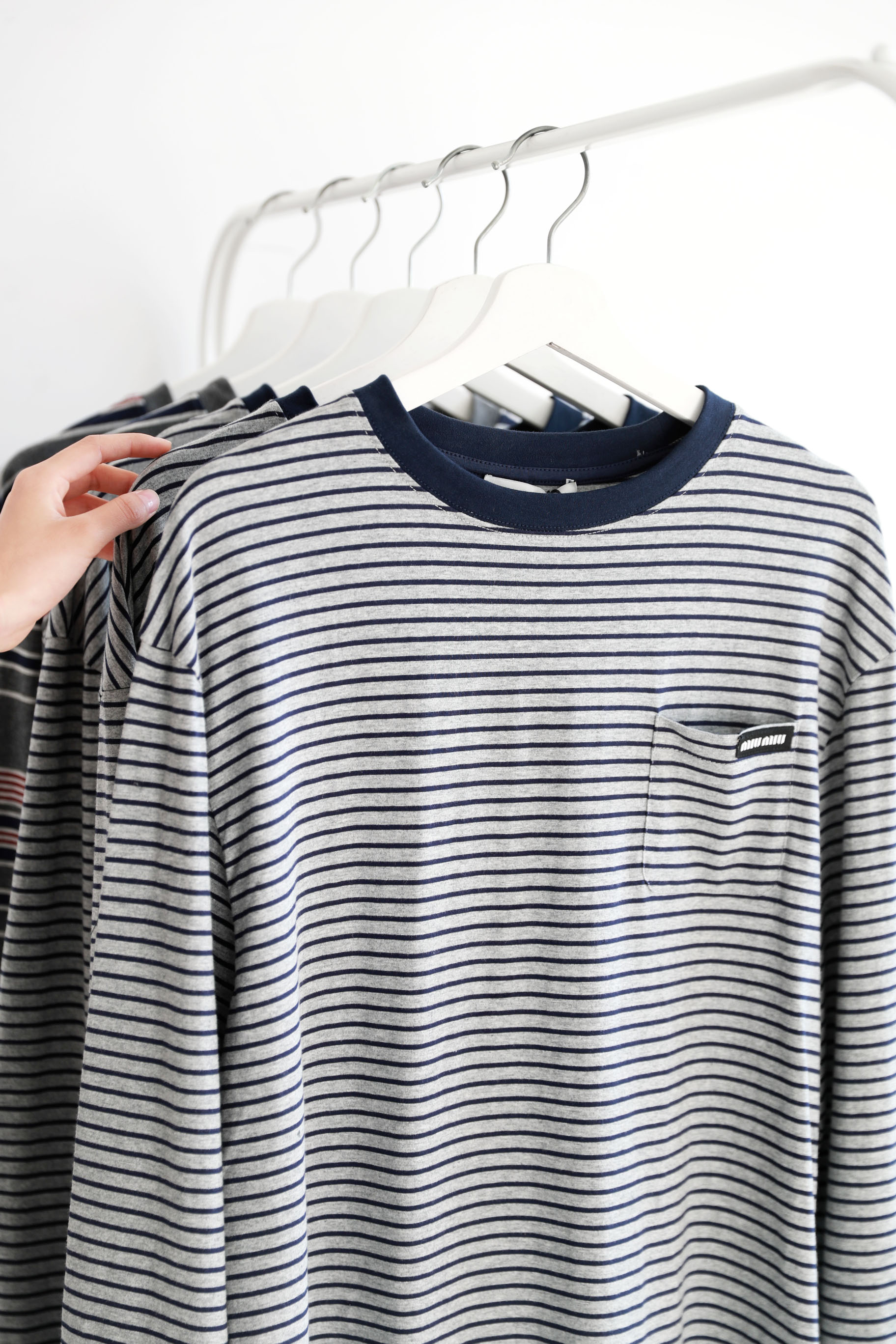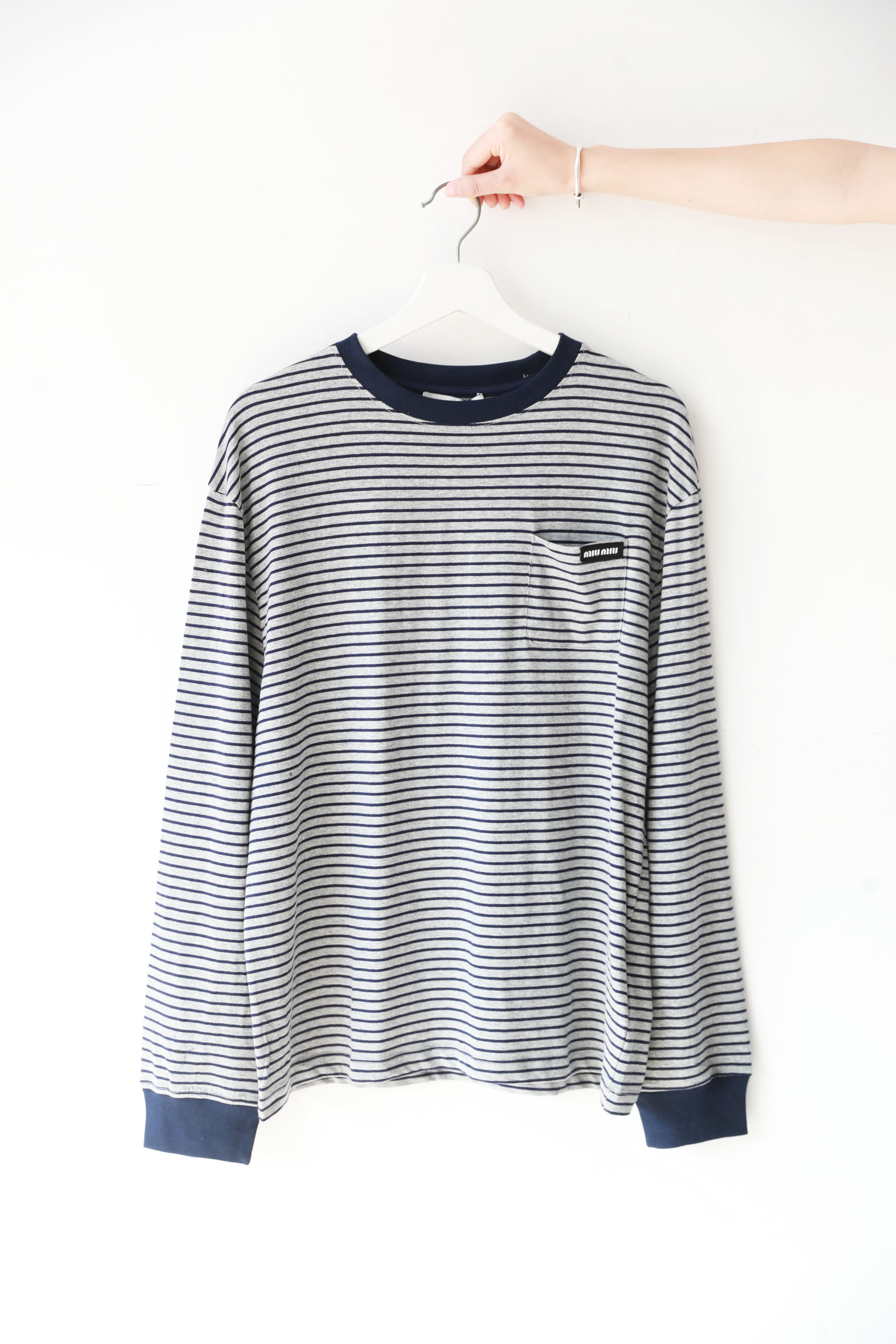 港风条纹tee,胸口小横标。法式宽松圆领套头情侣全棉长袖C122566