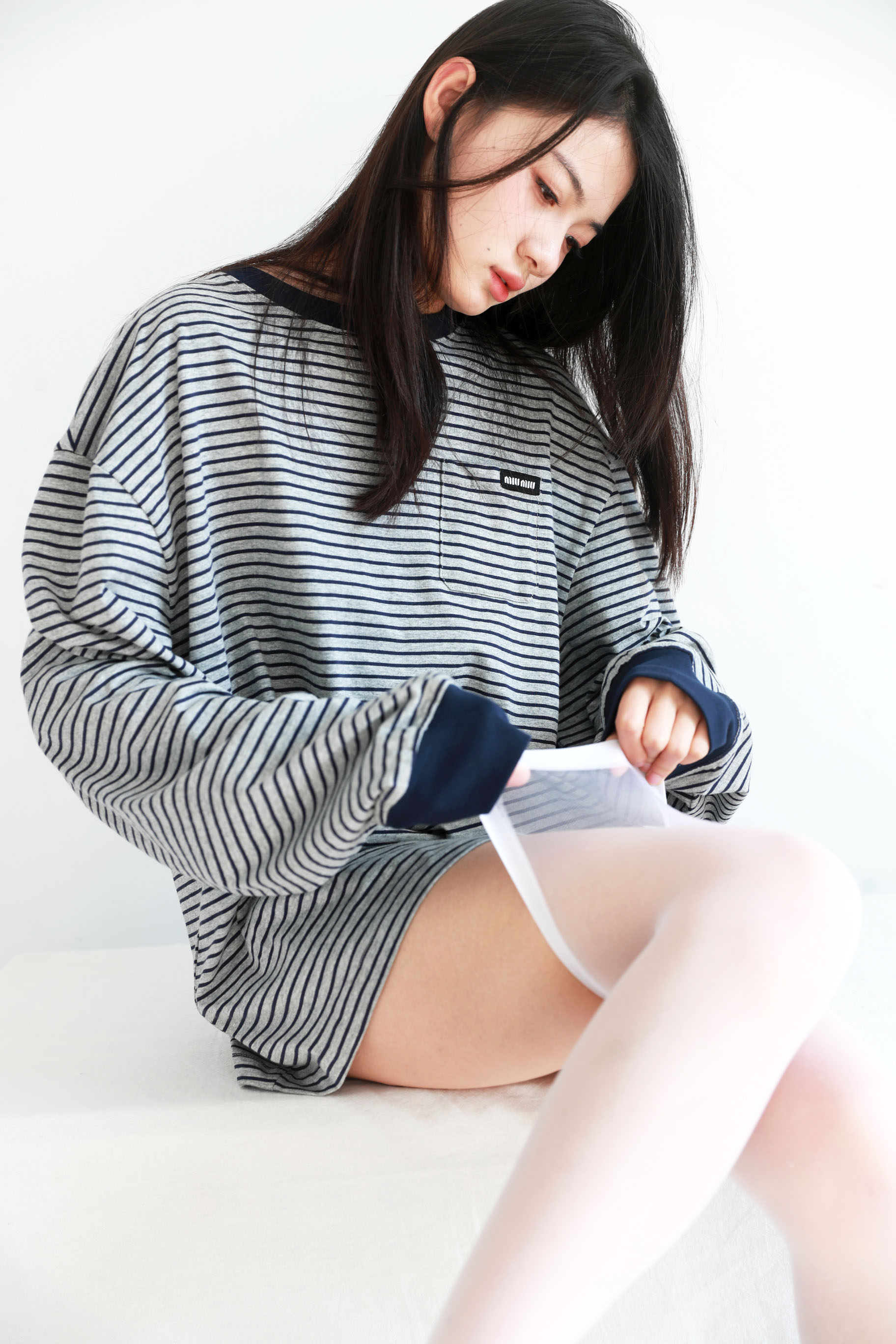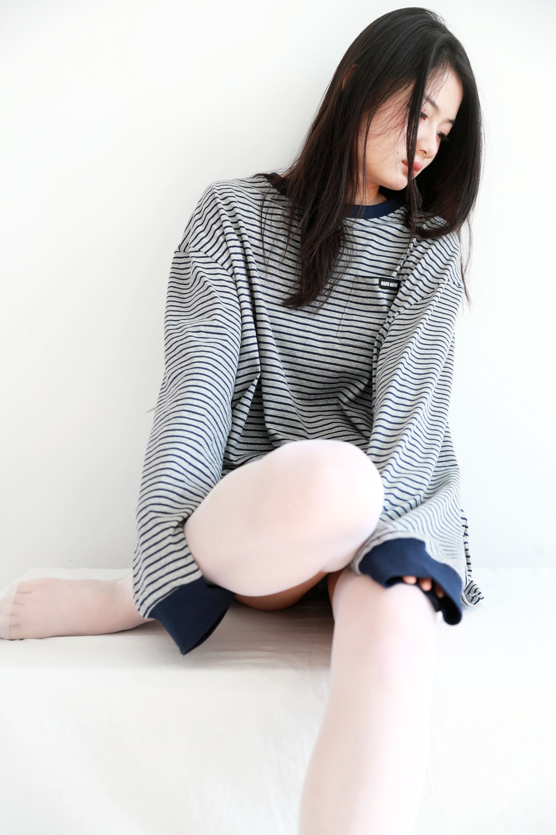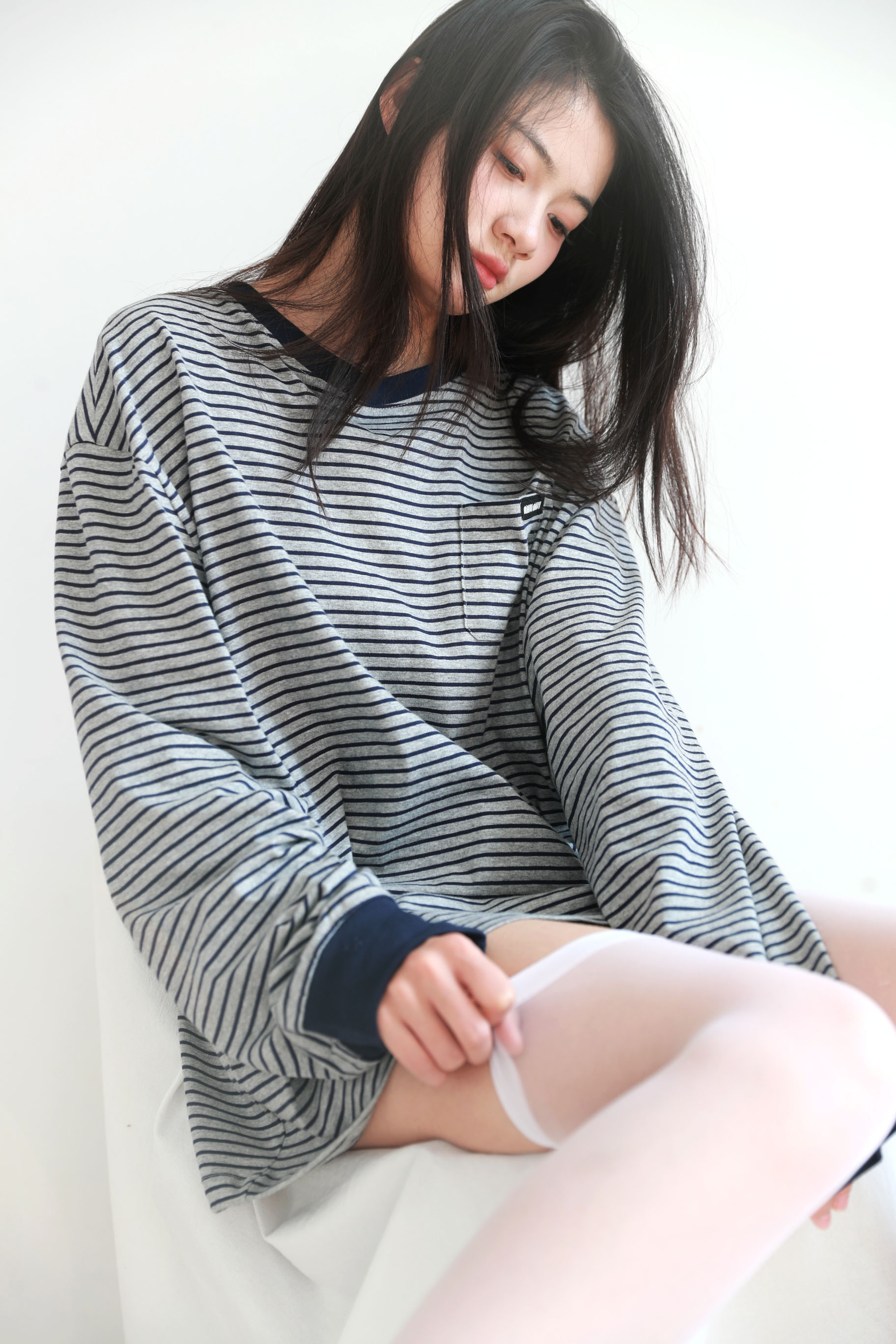 港风条纹tee,胸口小横标。法式宽松圆领套头情侣全棉长袖C122566