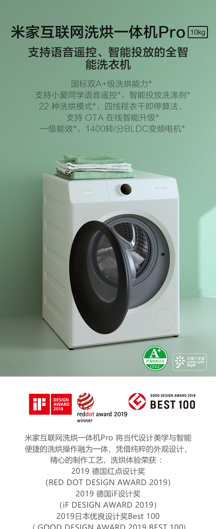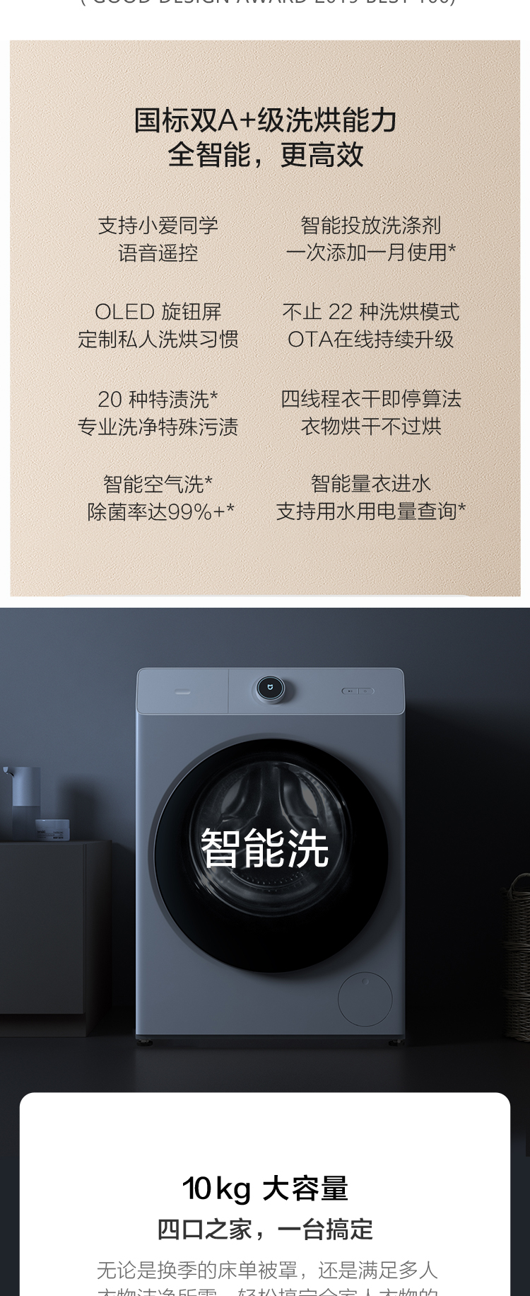 【小米热销】米家小米出品 滚筒洗衣机全自动 10公斤互联网洗烘一体烘干机Pro 智能投放语音遥控 XHQG100MJ11