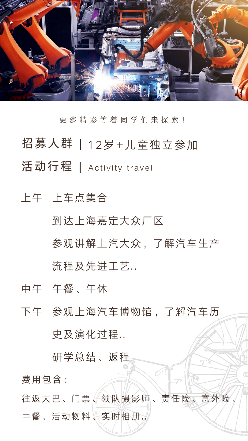 定制包团 | 孩子志独立营 | 名企研学 中学生,探索汽车之谜 走进上汽大众、汽车博物馆,深度探究汽车奥秘,感受名企文化丰富知识,开拓视野