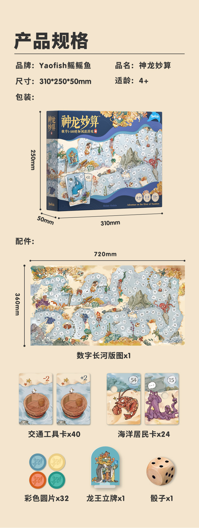 Yaofish神龙妙算小学生100内速算神器儿童数学桌游亲子益智玩具4+