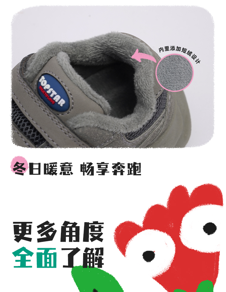 TOPSTAR秋冬加绒男女童运动软底儿童棉鞋1317