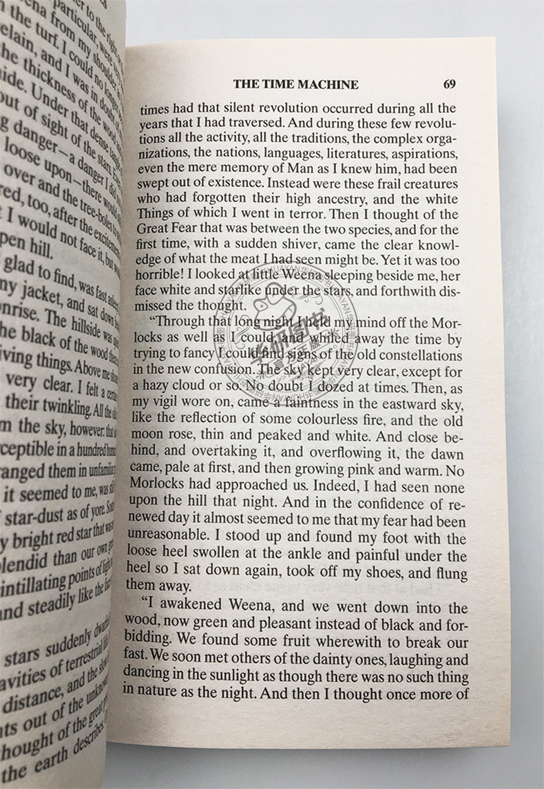 The Time Machineconveys the Time Traveller into the distant future and an extraordinary world. There, stranded on a slowly dying Earth, he discovers two bizarre races: the effete Eloi and the subterranean Morlocks—a haunting portrayal of Darwin s evolutionary theory carried to a terrible conclusion.