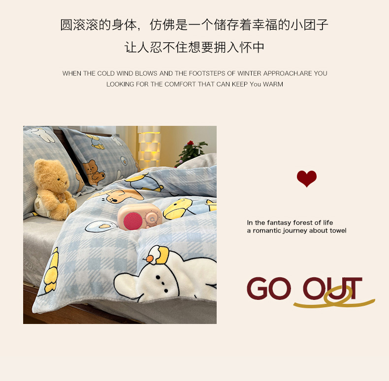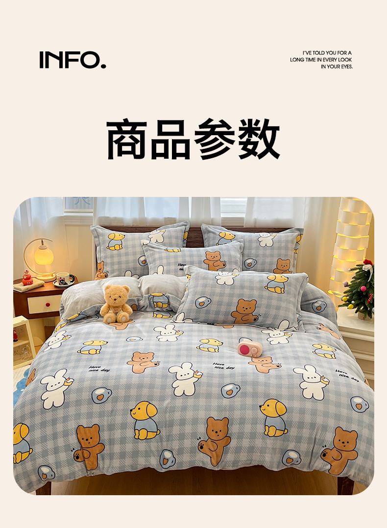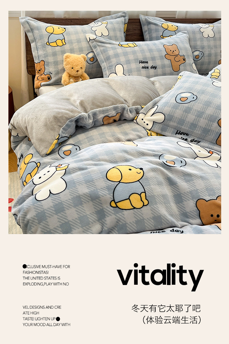 | 【产品名称】 | 卡通双面牛奶绒四件套 | ||