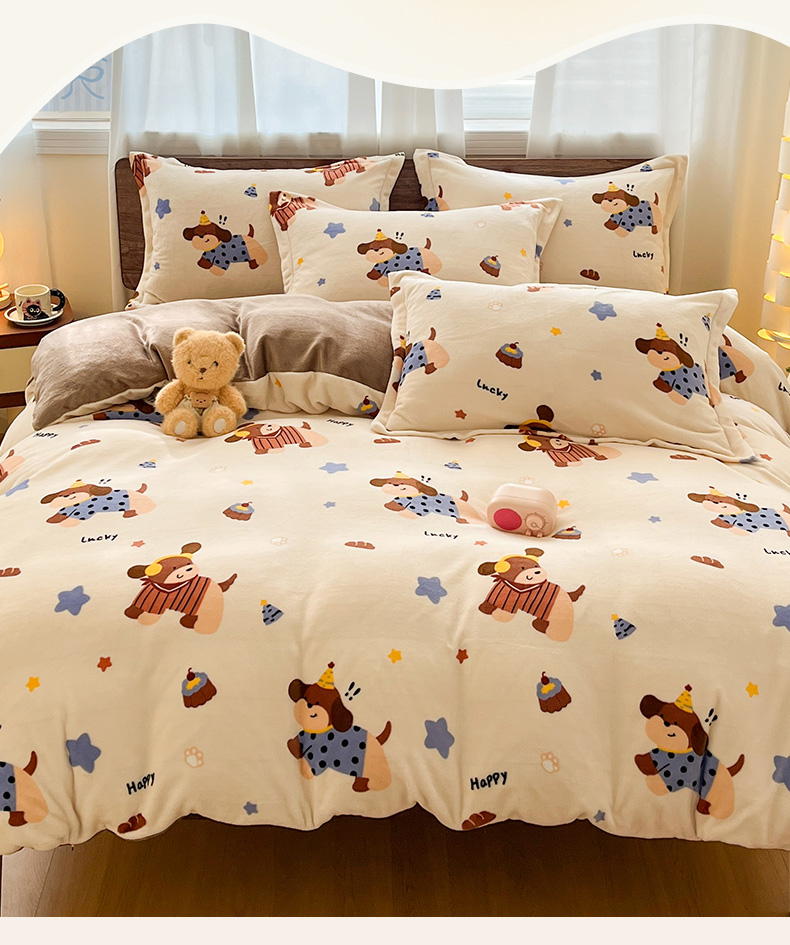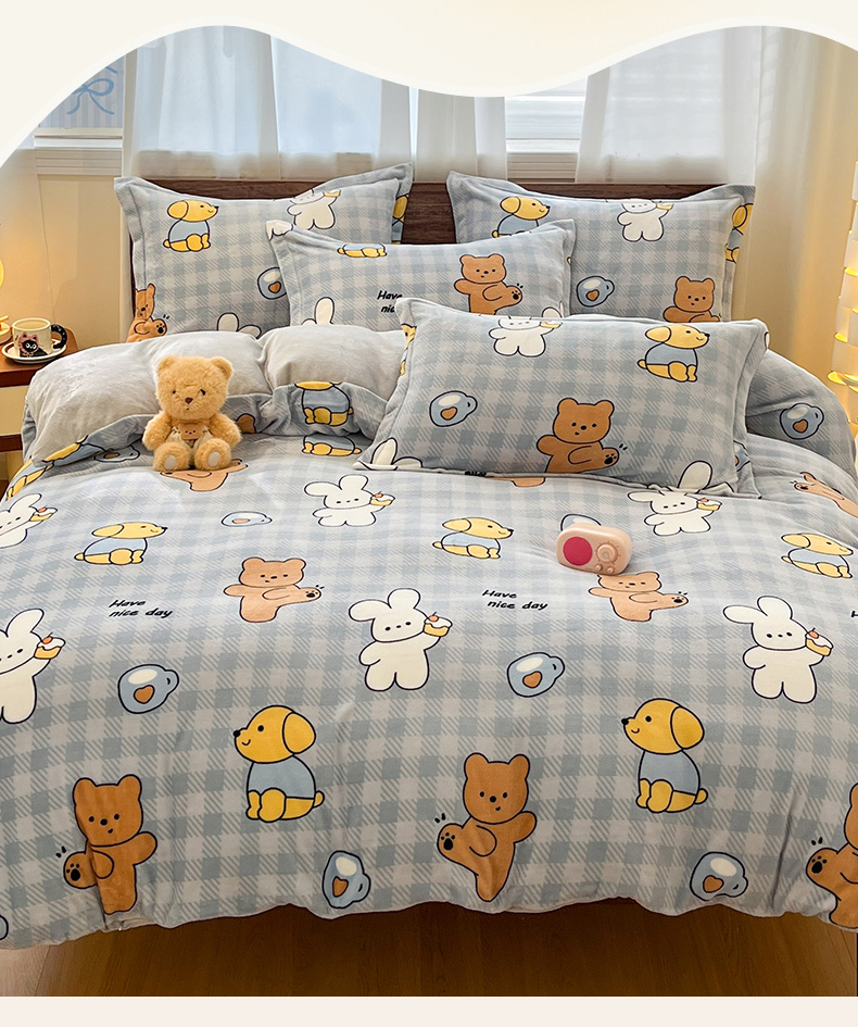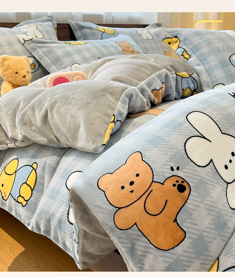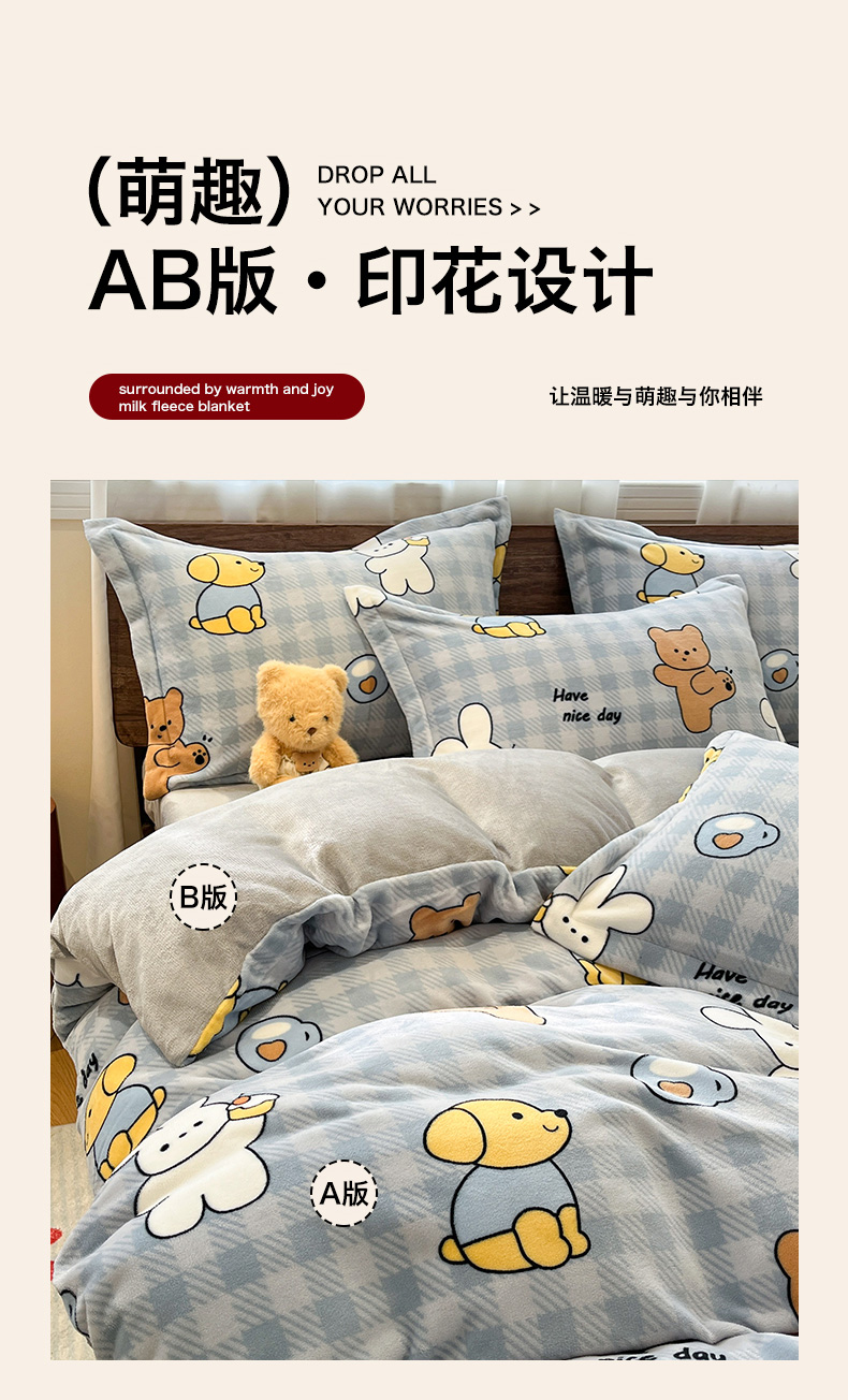 双面绒更保暖 A类面料更健康【京帝 卡通双面牛奶绒四件套】 高克重牛奶绒 绒面丰盈厚实 内置防静电导电丝 多款印花自选 性价比高 极致暖冬享受 #M663