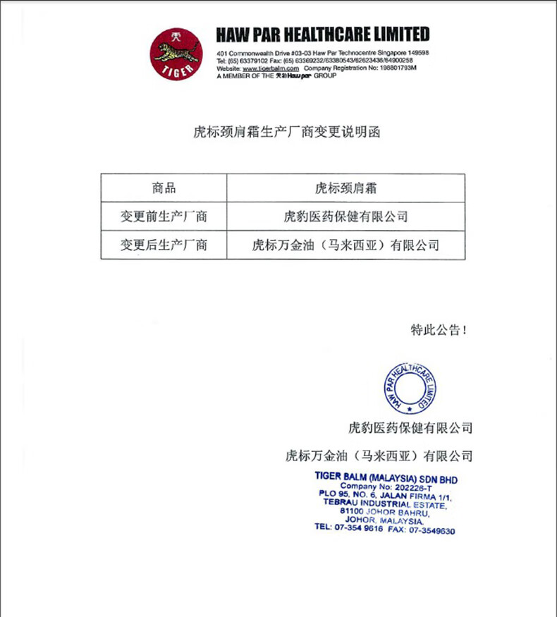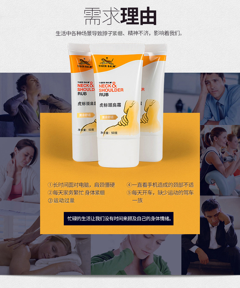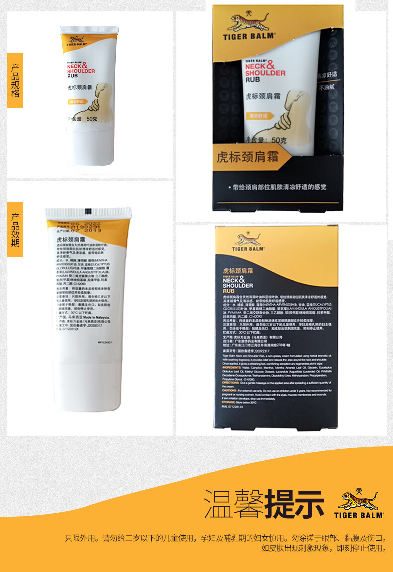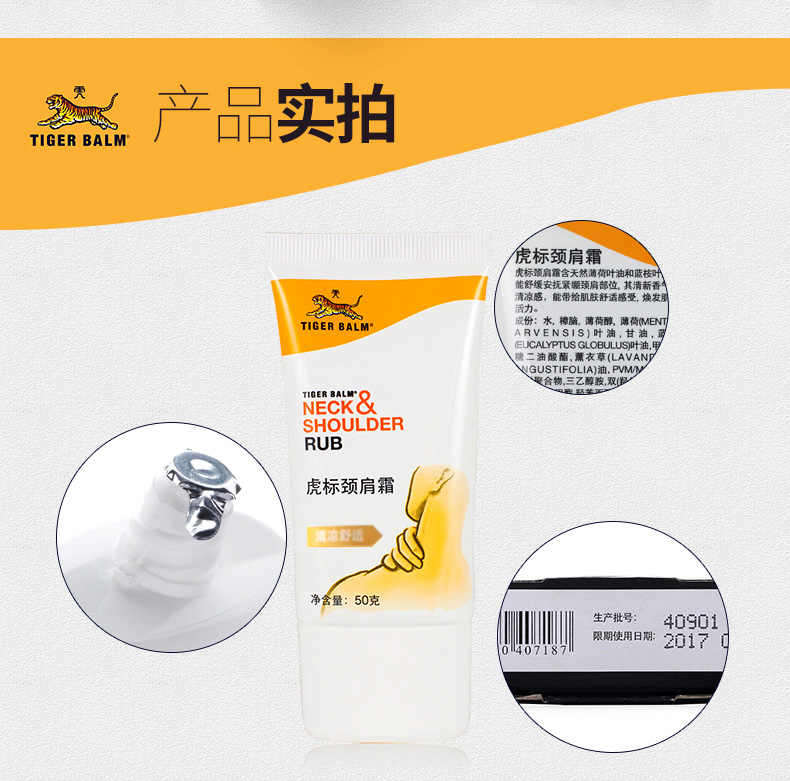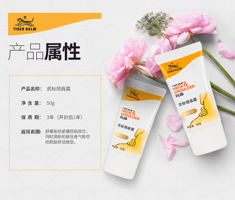 虎标(TigerBalm)颈肩霜 颈肩舒肩颈舒肩颈霜 肌肤清凉舒适 50g