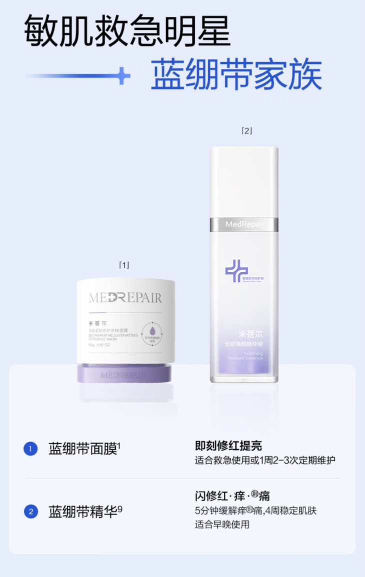 米蓓尔又有新啦!蓝绷带面膜2.0,是升级版哦,增加了抗老老成分,还有蓝绷带精华液,都是敏敏肌可用的,镇定安抚,修复抗炎,也正是应季啊,最近换季,春敏的老粉超多,没有在用Ayu的,可以试试哦!