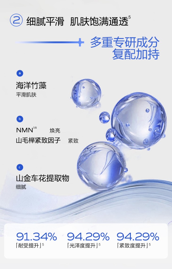 不仅如此,米蓓尔蓝绷带2.0面膜中还含有NMN,这种成分具备卓越的抗衰老功效,能够提升NAD+水平,延缓肌肤衰老进程,增强细胞再生能力,改善肌肤整体健康状况!还有山毛榉紧致因子,能促进肌肤自身生成玻尿酸,持久滋润,改善松弛;海洋竹藻富含岩藻甾醇与海洋类胡萝卜素,对皮肤细胞具有出色的保护、修复及维稳作用,亲肤性极佳,提升肌肤平滑度;山金车花提取物舒缓抗炎修复,缓解不适,助力修复,使肌肤愈发细腻。