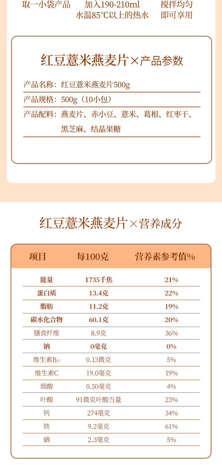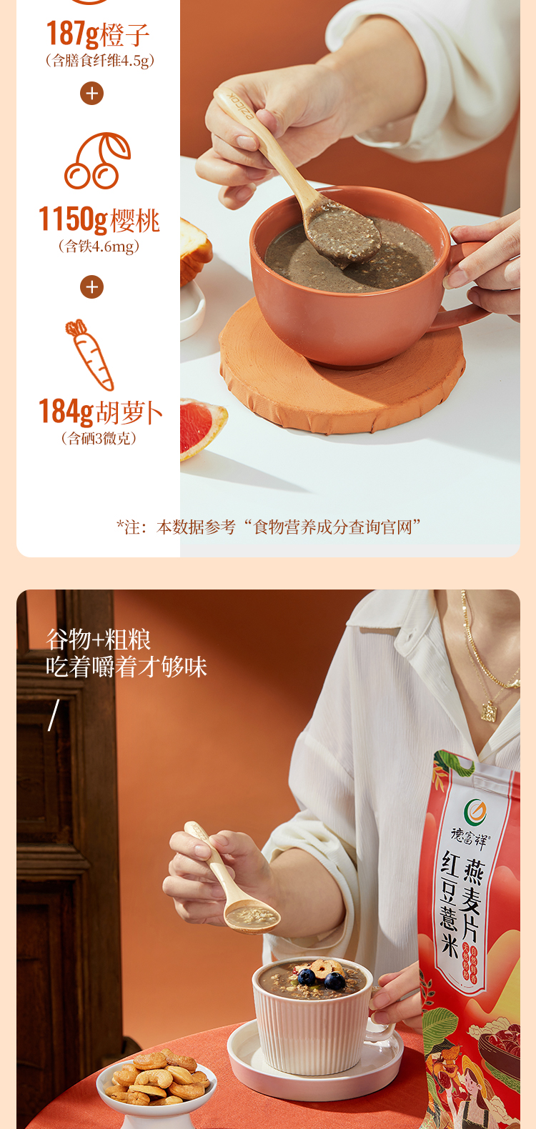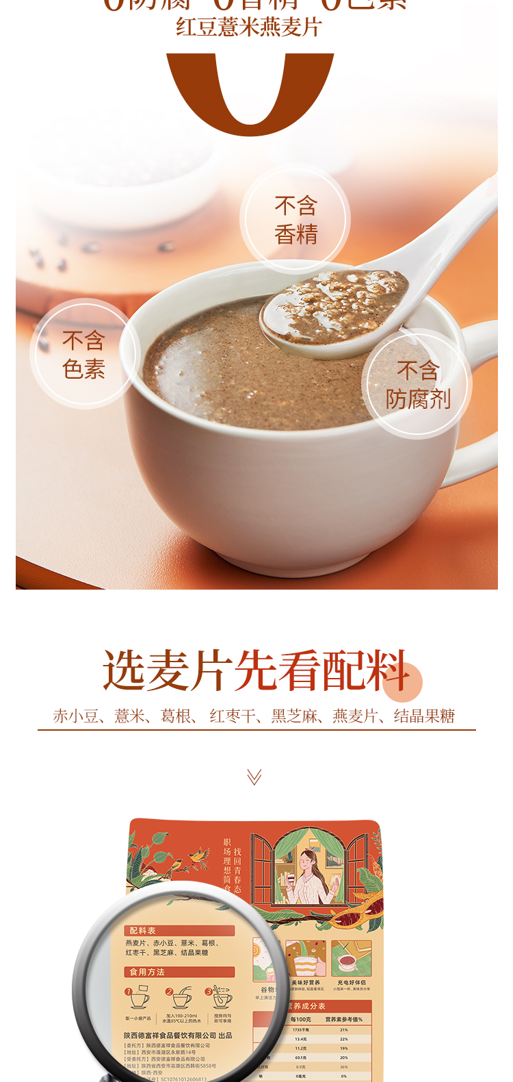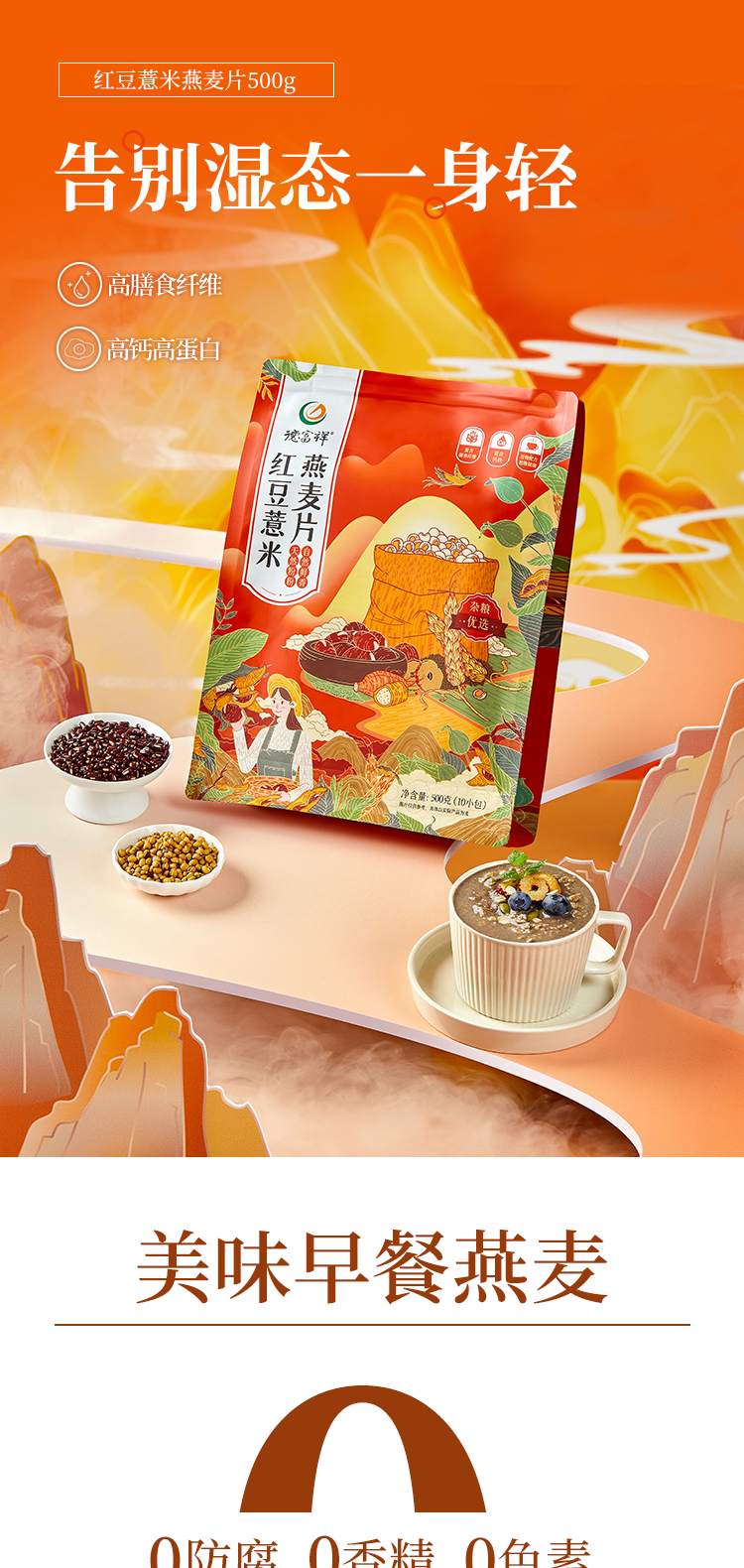 【五红滋养】德富祥红豆薏米燕麦片(甜口)速食冲饮即食营养小袋装500g*1袋