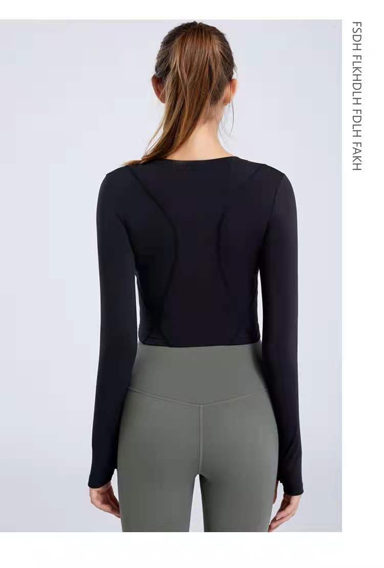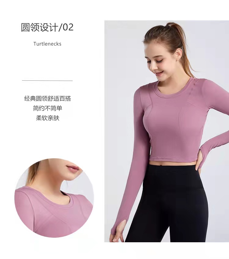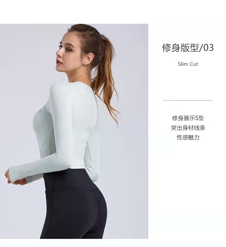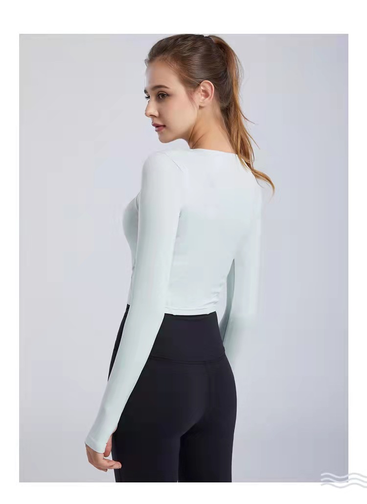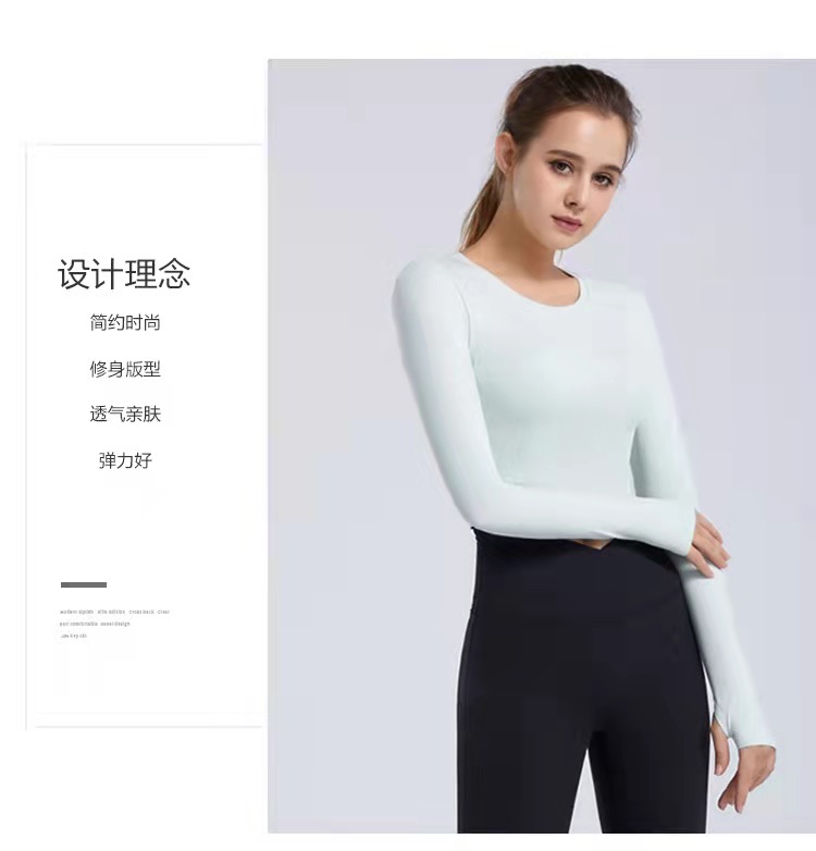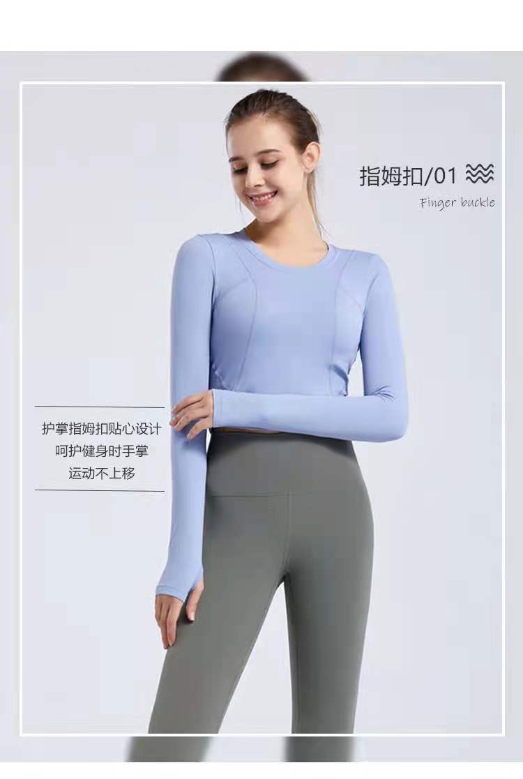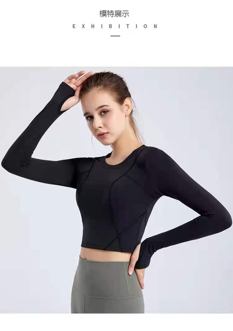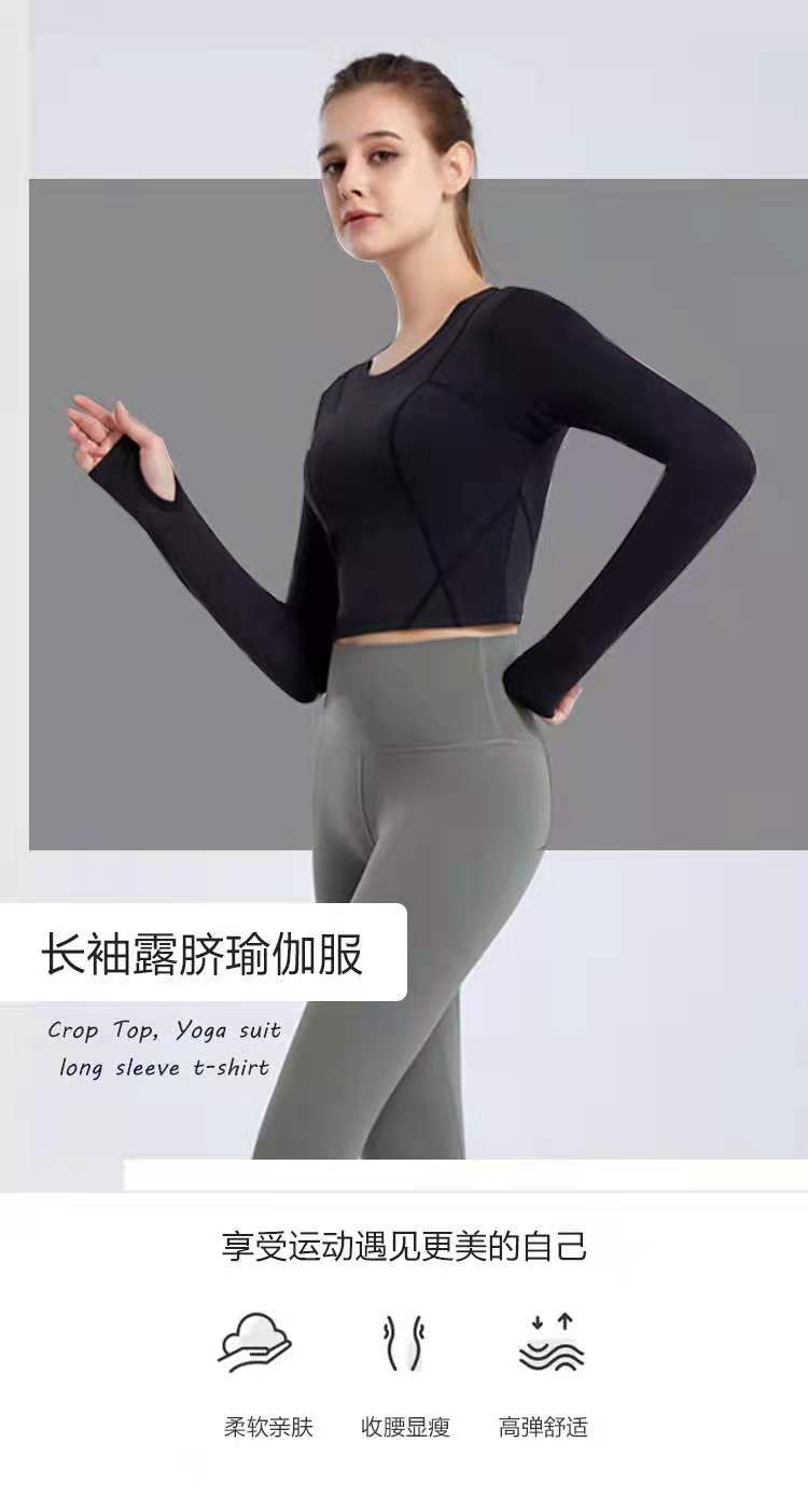 秋冬新款露脐瑜伽服长袖T恤跑步运动上衣健身服长袖罩衫女rd03