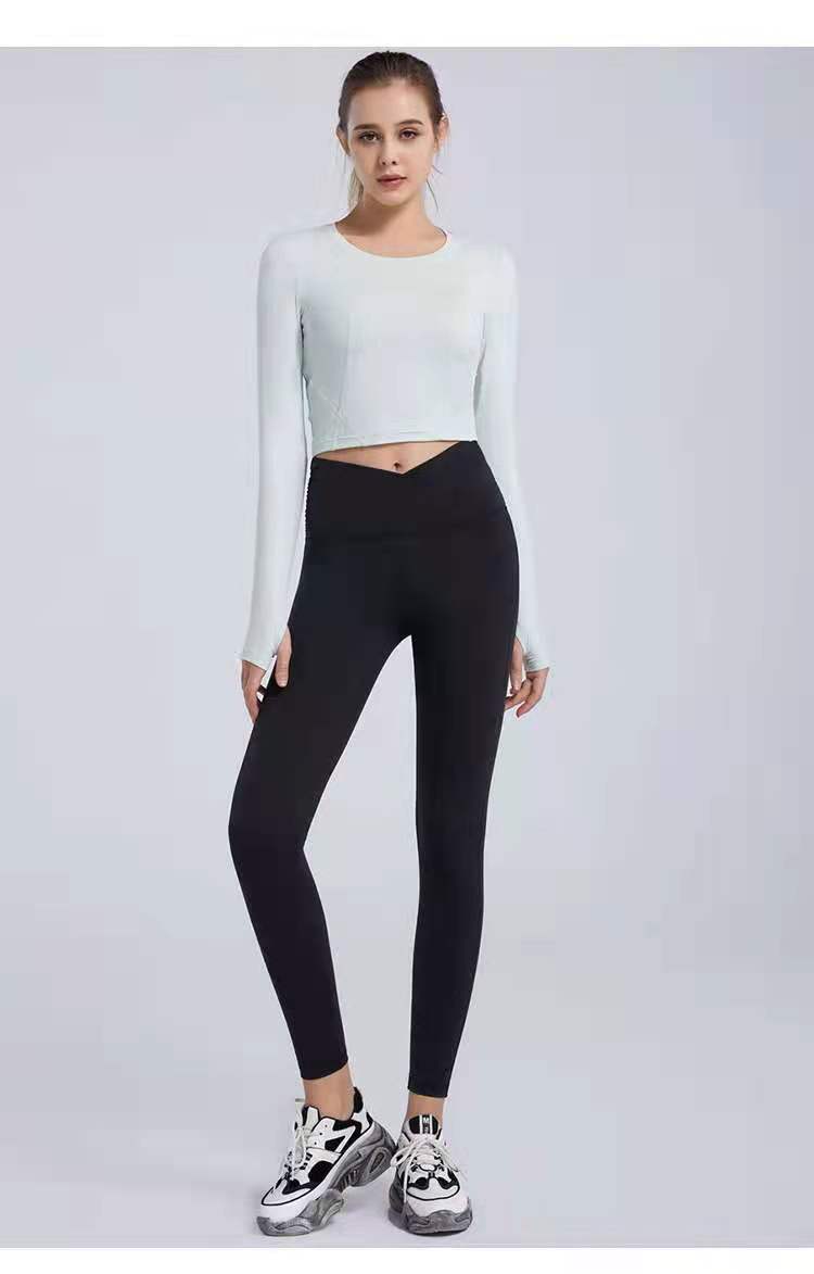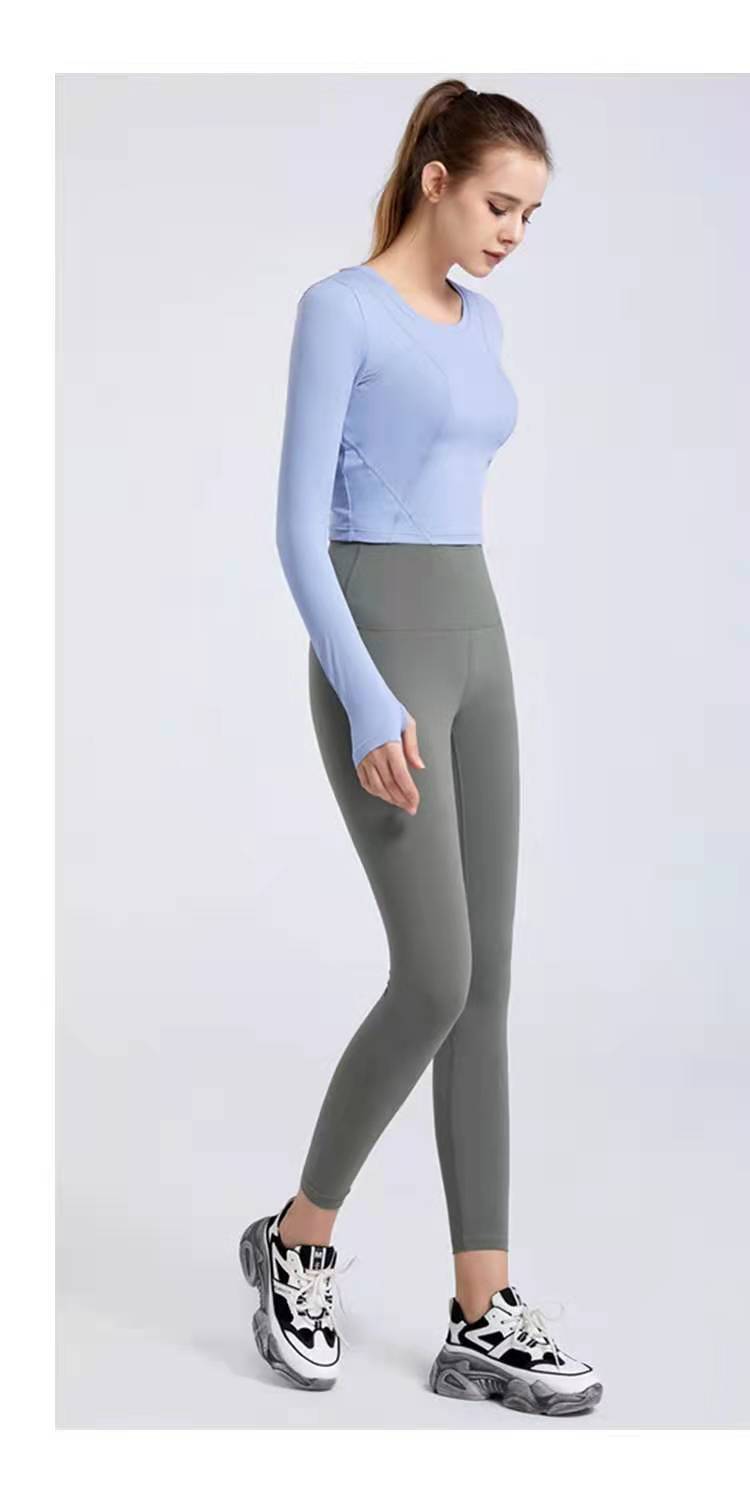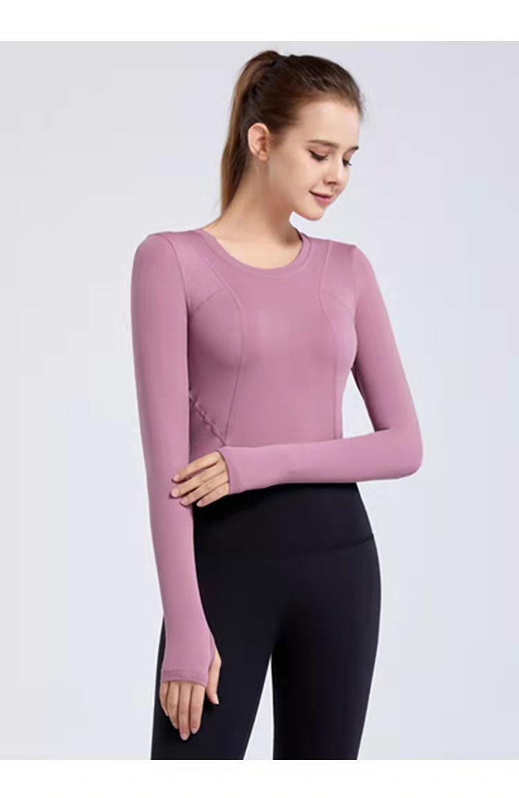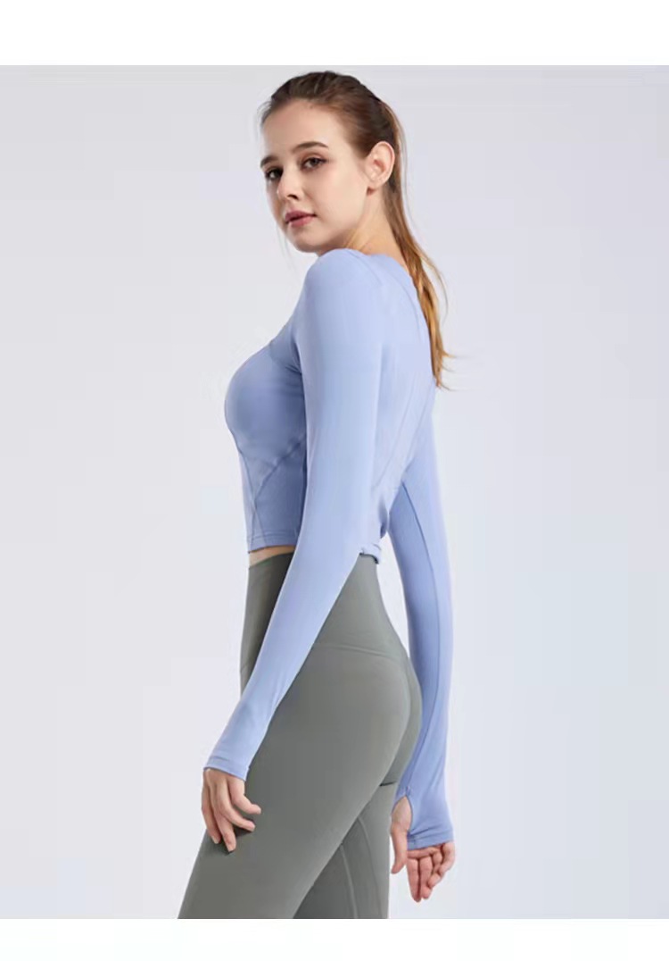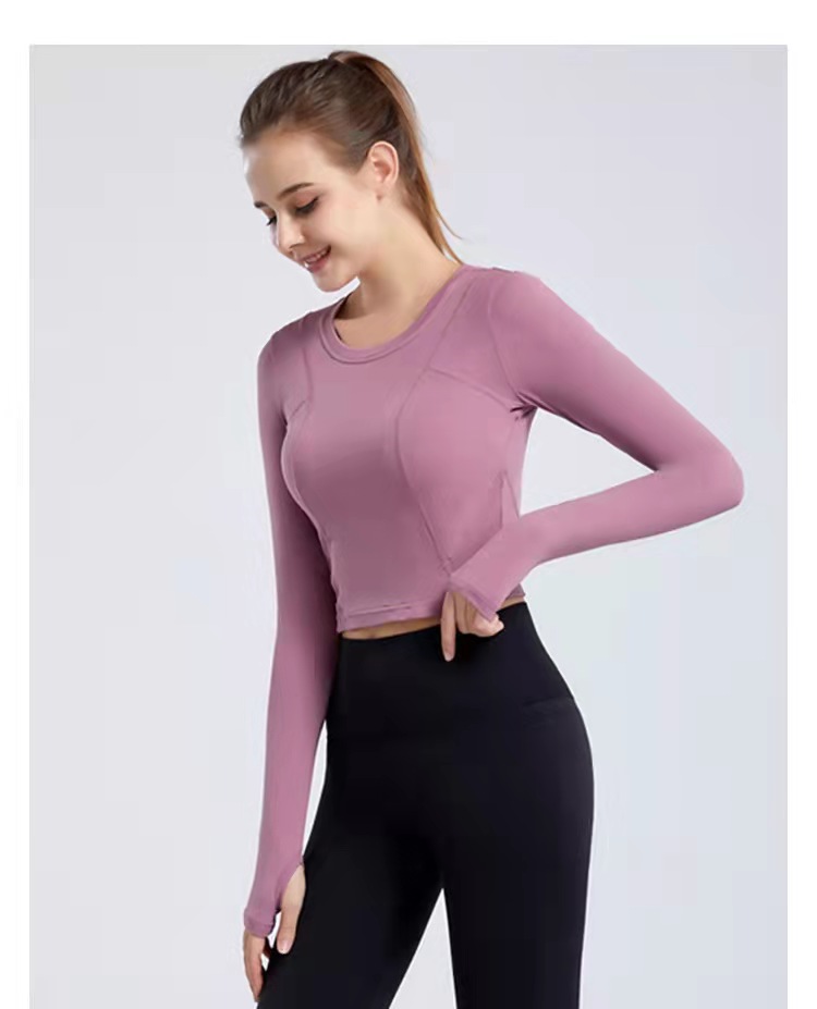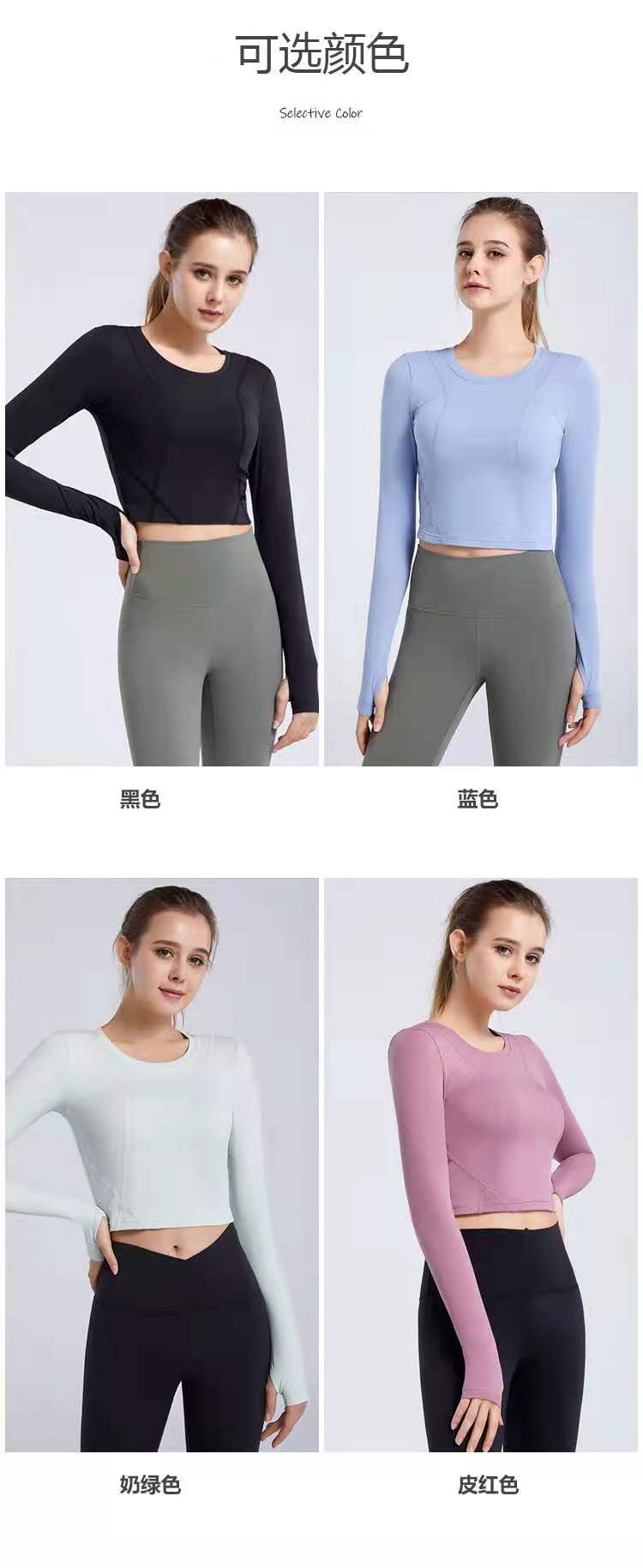 秋冬新款露脐瑜伽服长袖T恤跑步运动上衣健身服长袖罩衫女rd03