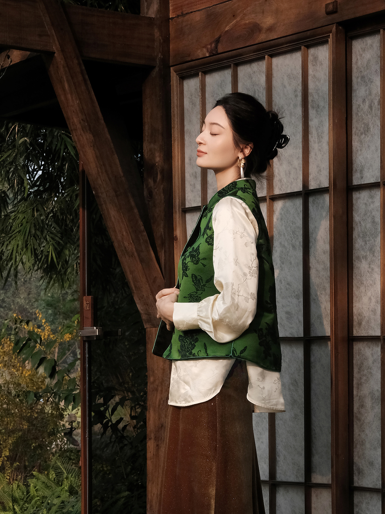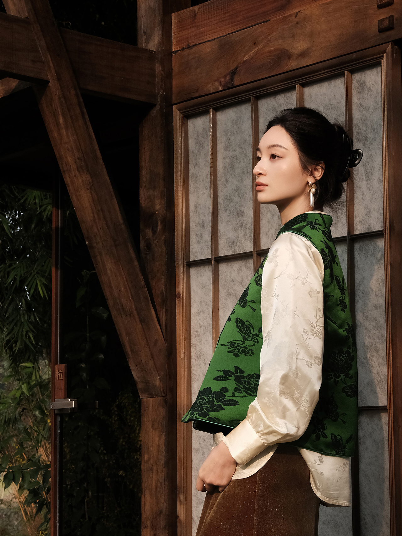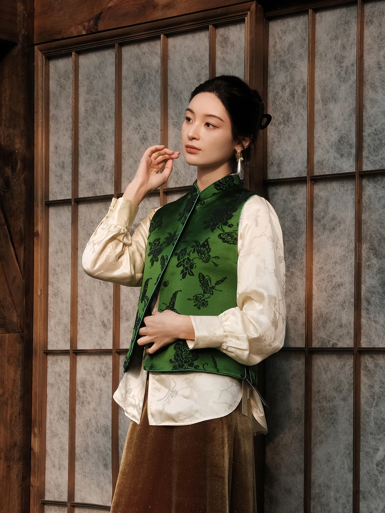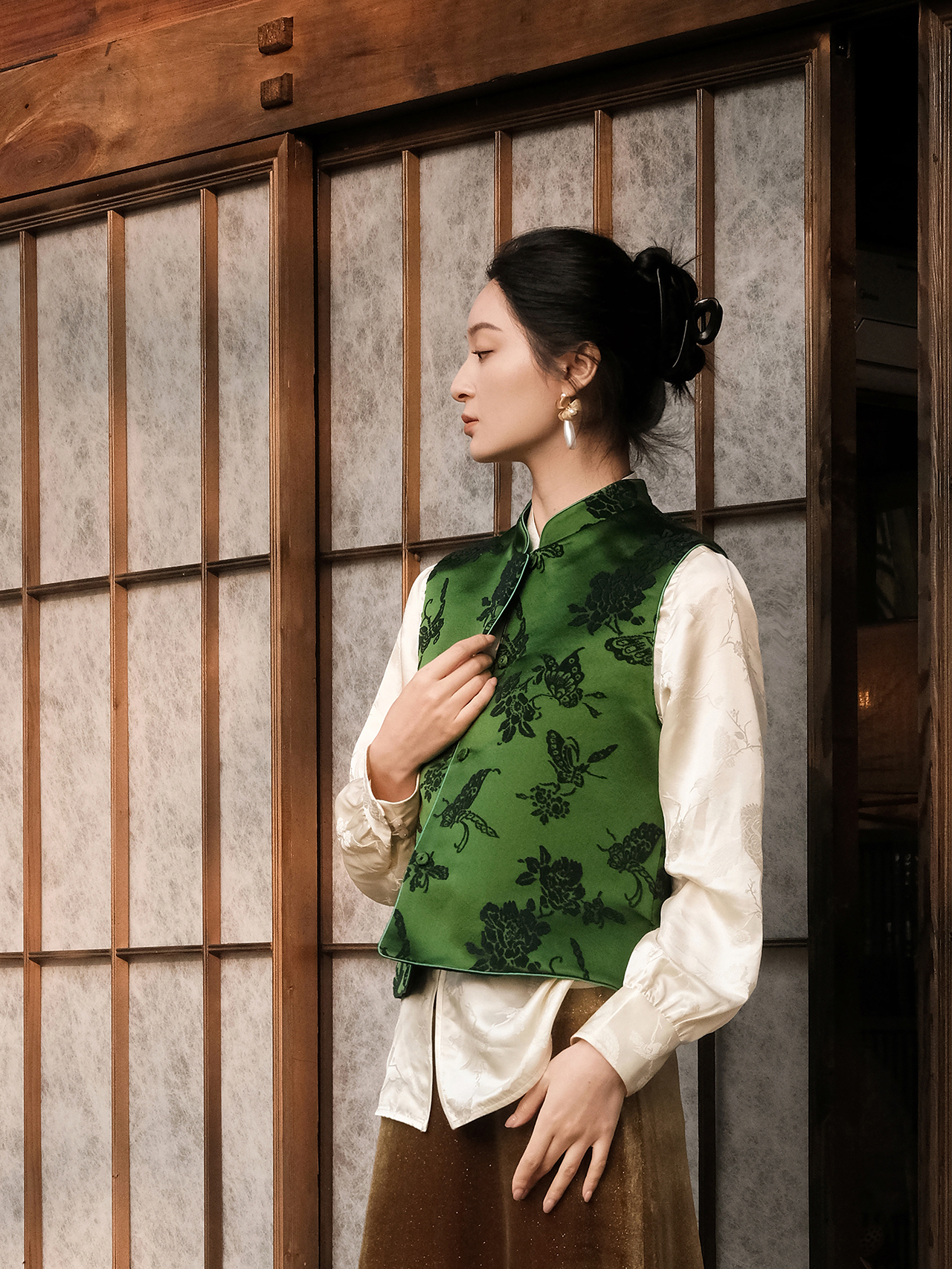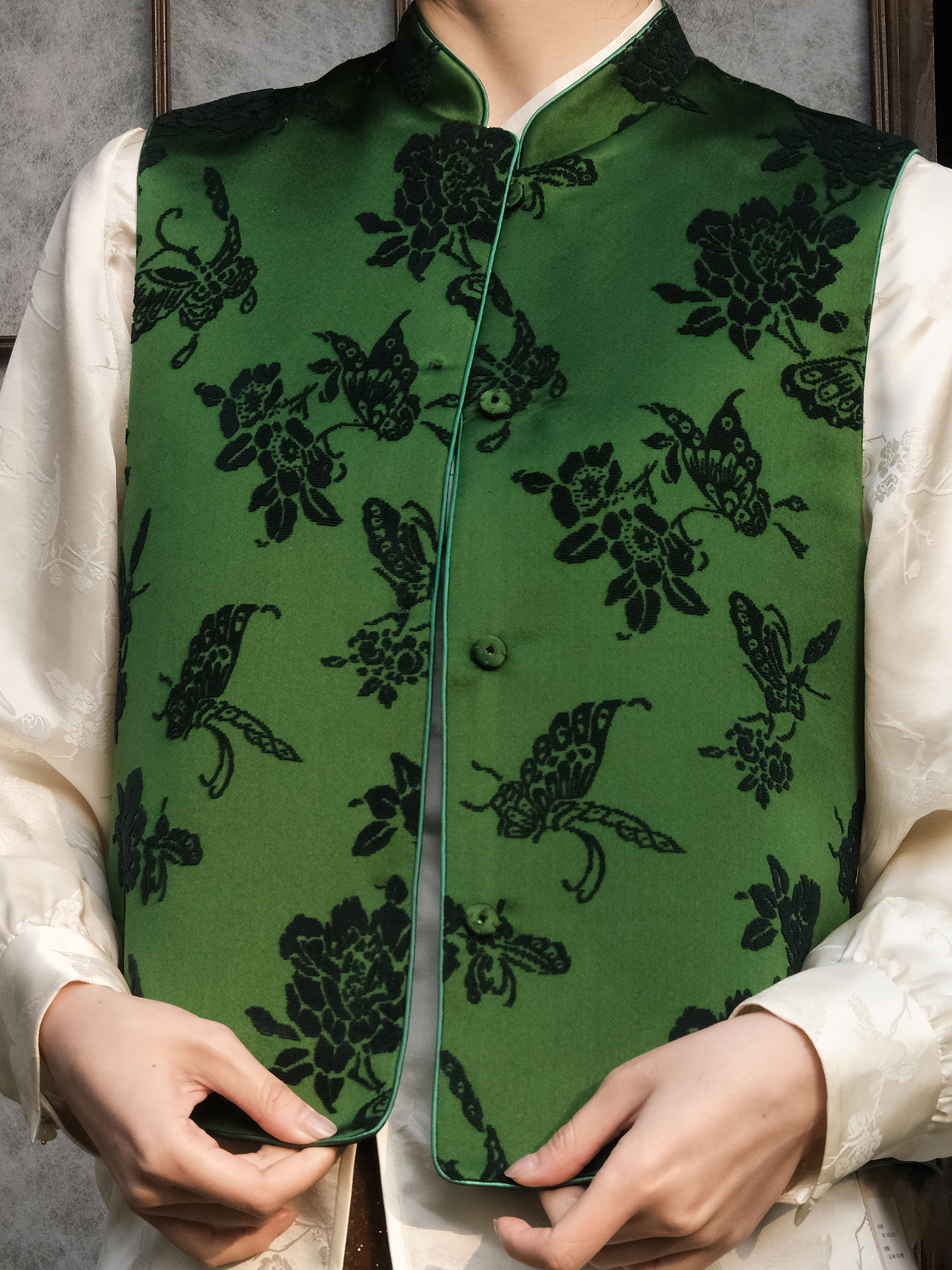 盛唐牡丹 | 翡翠绿漳缎马甲