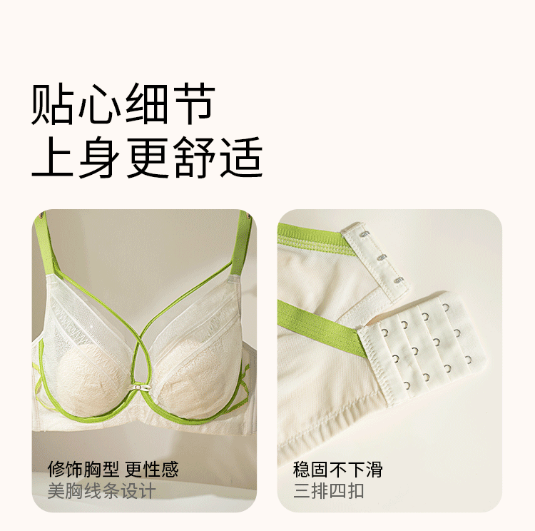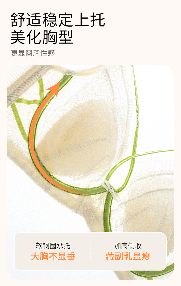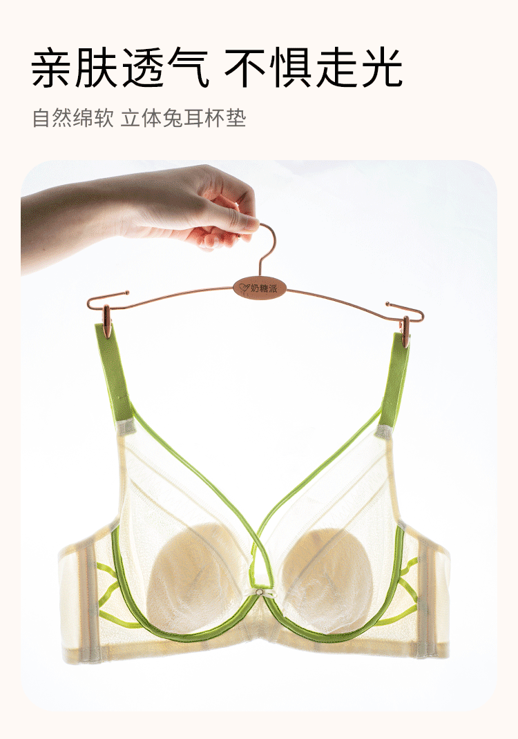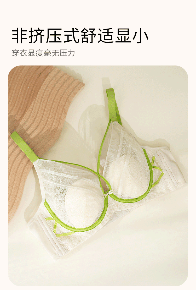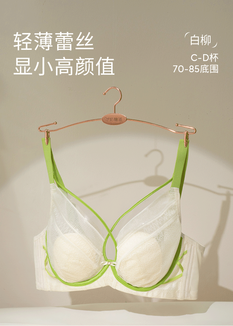奶糖派大杯文胸白柳轻薄蕾丝大胸显小撞色文胸防下垂甜美性感内衣