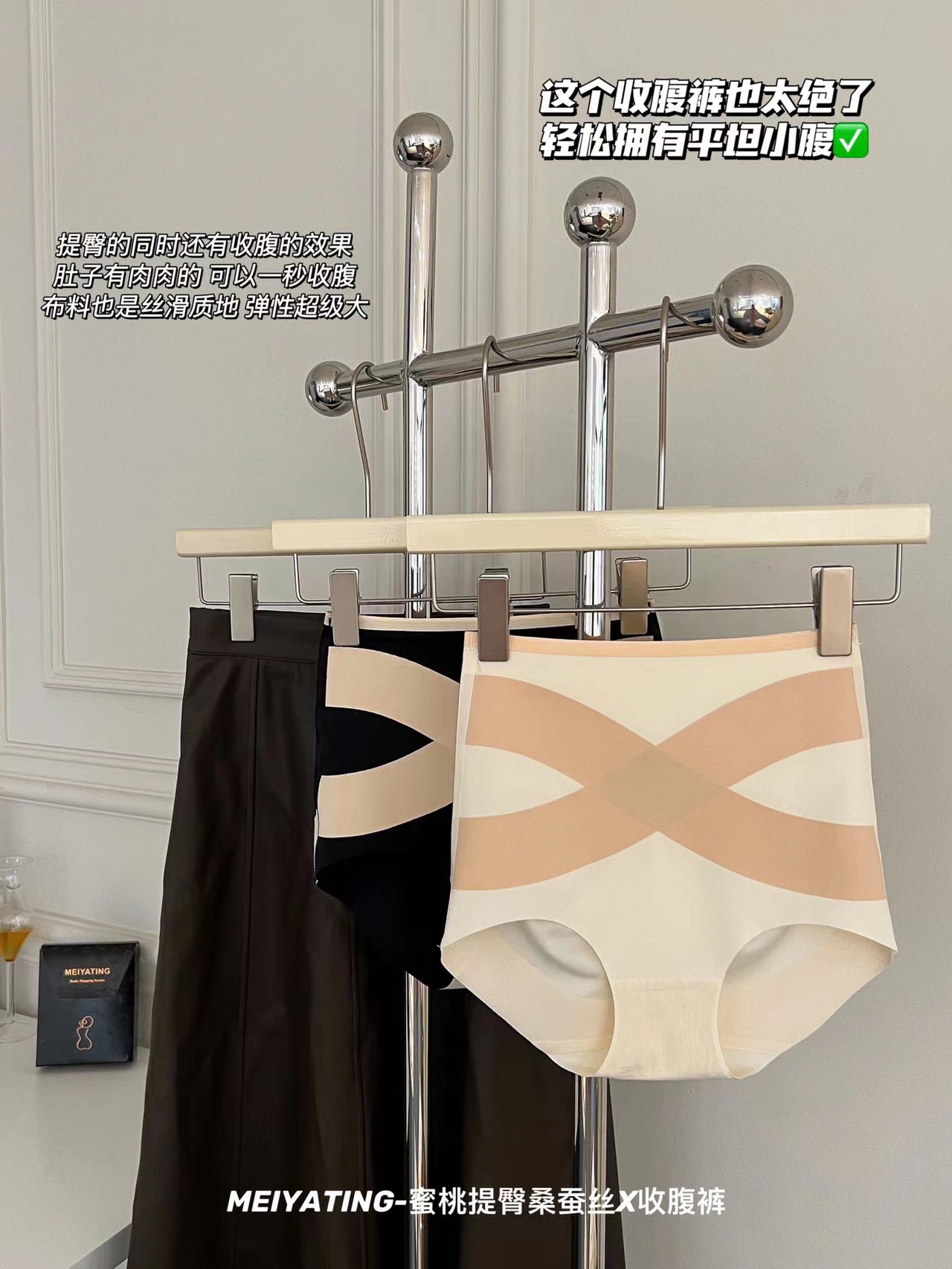 【全网火爆收腹裤!蜜桃提臀桑蚕丝内裤】x型交叉收腹,多面立体轻压收腹底裆高腰塑形女士收腹内裤提臀舒适无痕打底塑身裤 粉丝专属