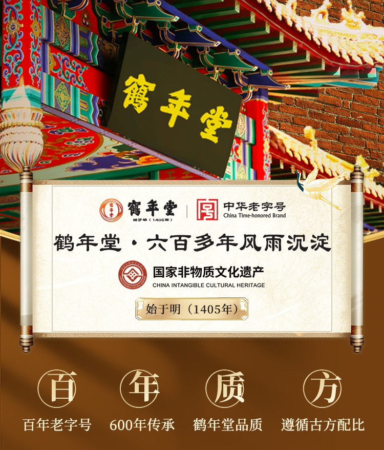 - 传统滋补膏–方北京鹤年堂!鹤年堂成立于1405年,至今615年,是国家非物质文化遗产和中华老字号单位!
