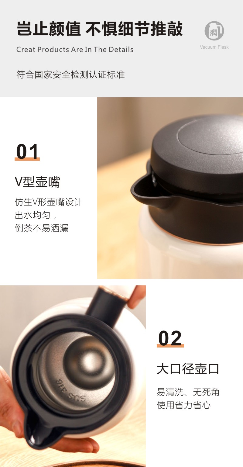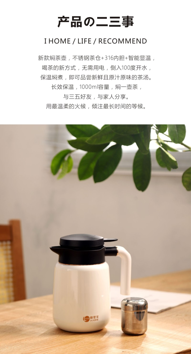 永利汇韩爱家焖茶壶家用智能测温保温壶316不锈钢便携高档焖泡壶热水壶1.0升