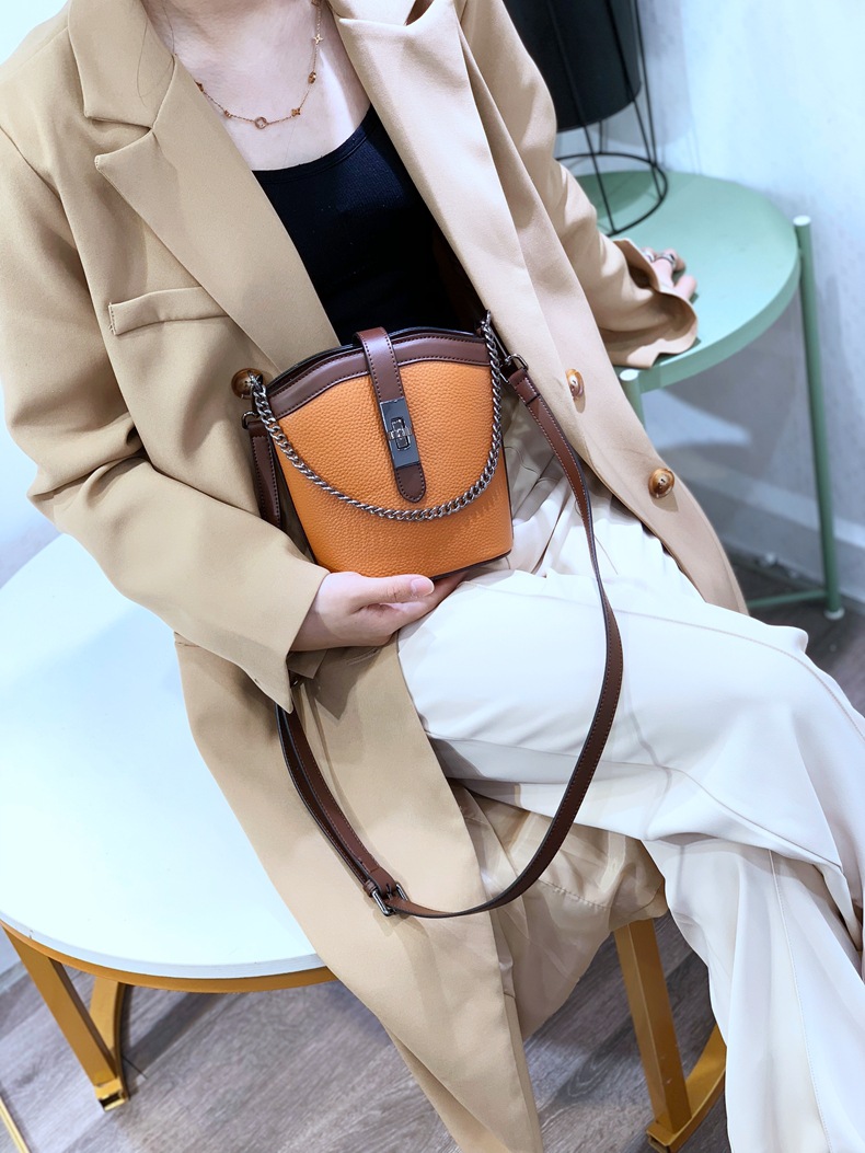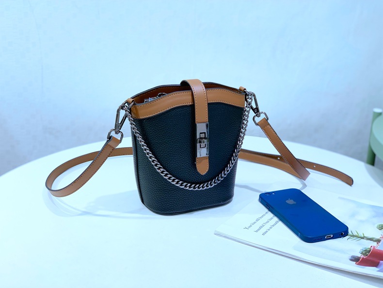 【预售3天】潮流撞色小包包2025新款链条百搭时尚斜挎单肩水桶包Z21P8819