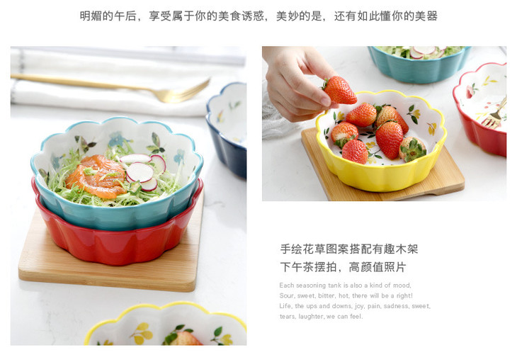 【碗】*四季花创意陶瓷ins水果沙拉碗早餐甜品碗蔬菜酱料碗儿童辅食小碗
