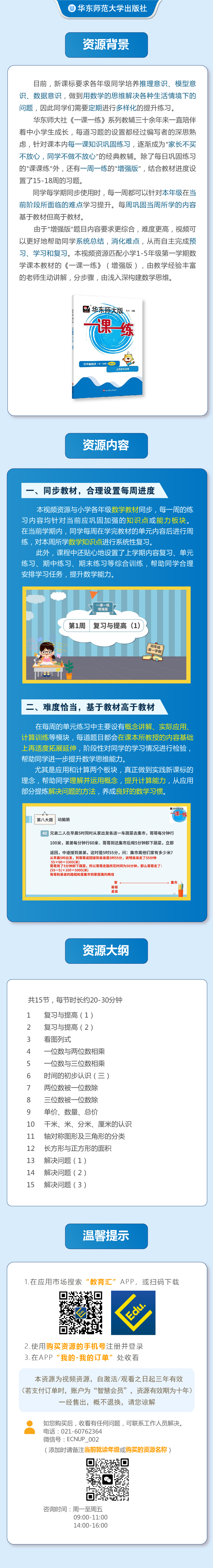 《一课一练》增强版 三年级数学(第一学期)配套视频 知识梳理 例题详解 举一反三