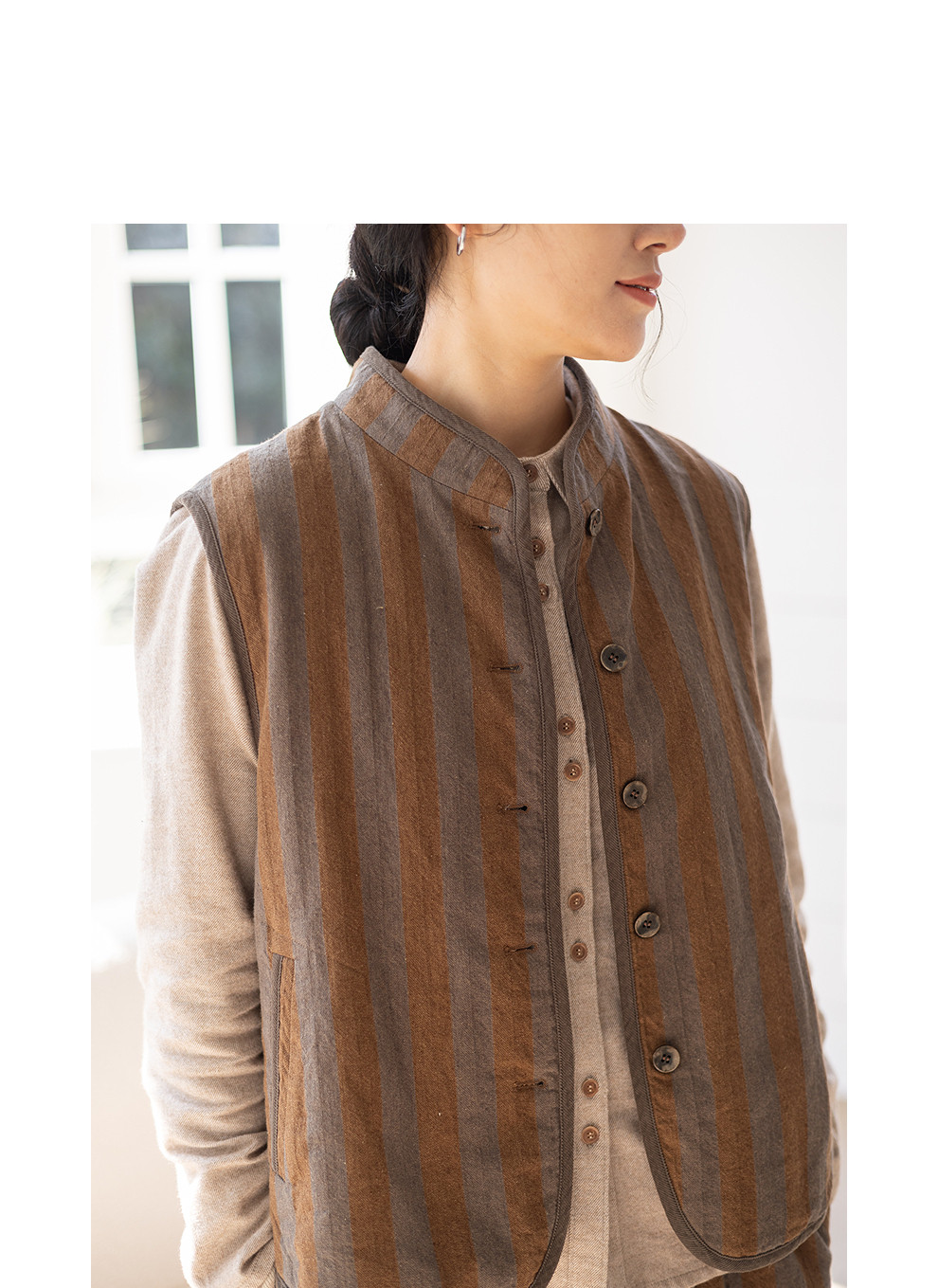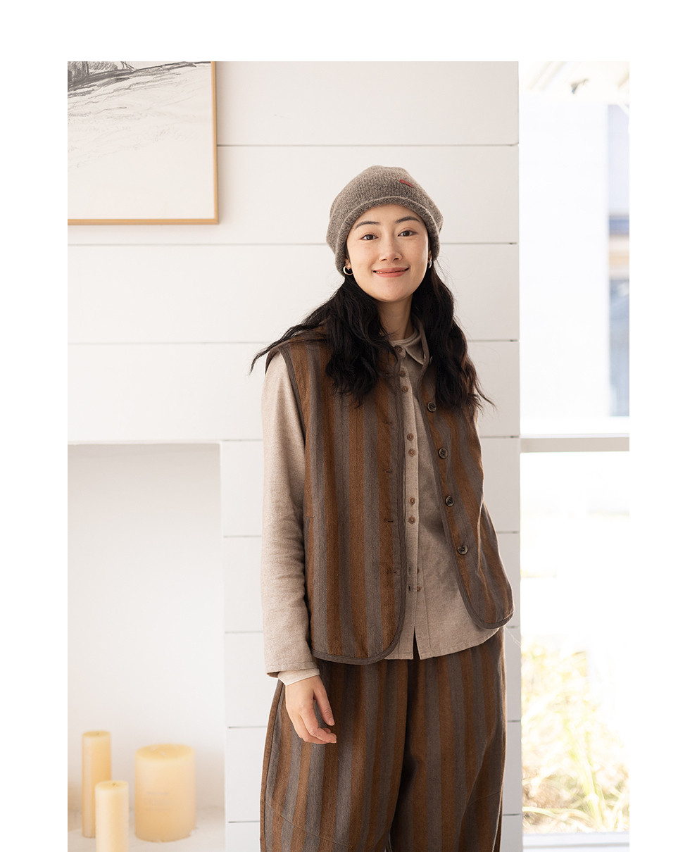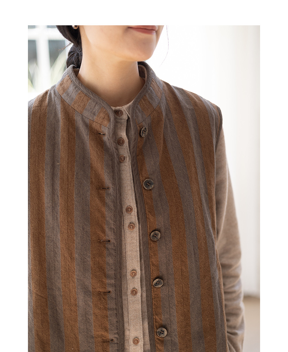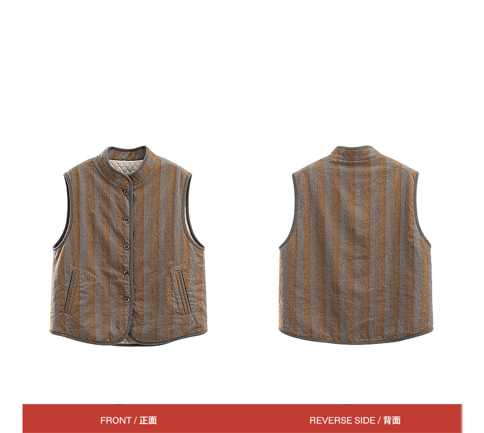 绽放031朵/棉麻色织鱼骨纹夹棉叠穿马甲女小立领文艺百搭马夹加厚