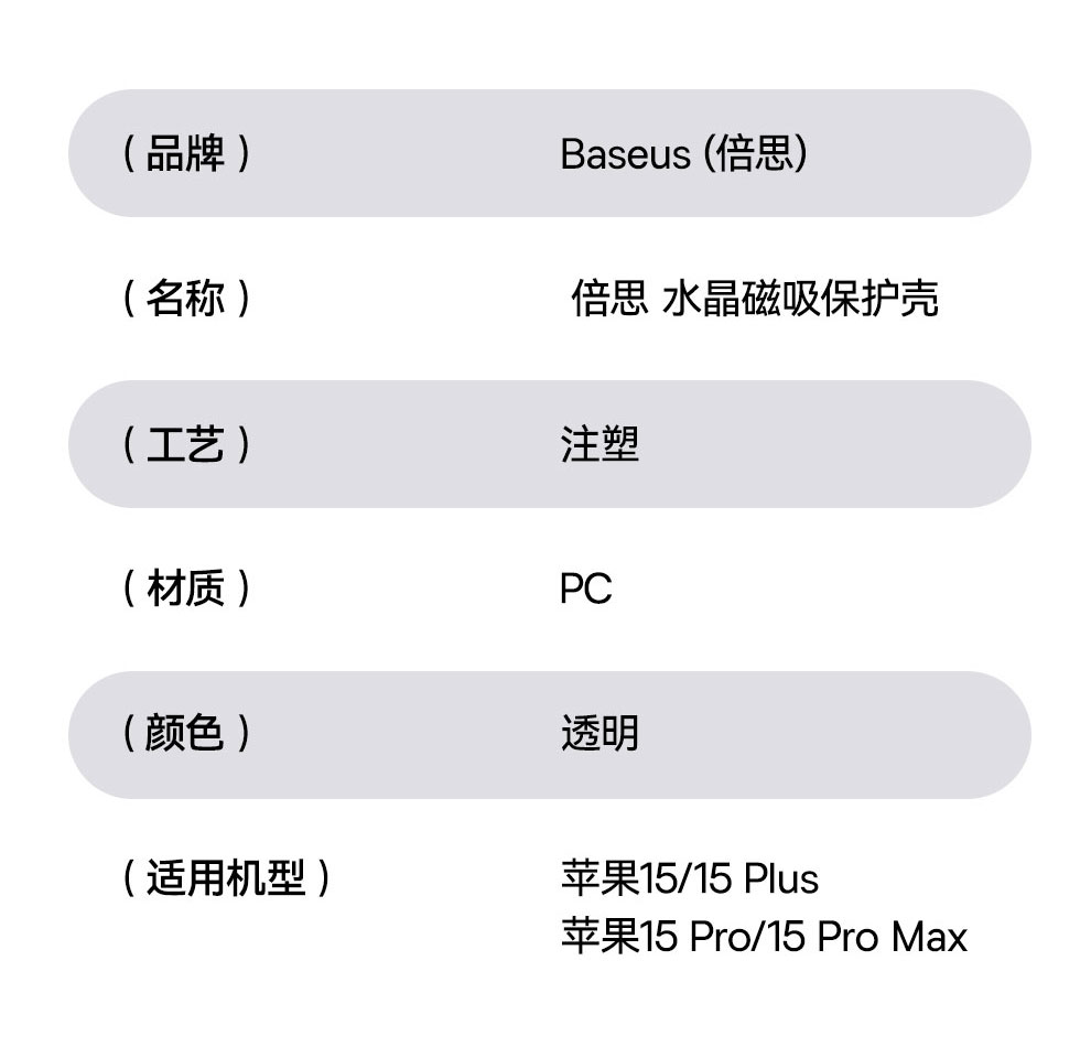 倍思 水晶磁吸保护壳iPhone12-16系列 透明