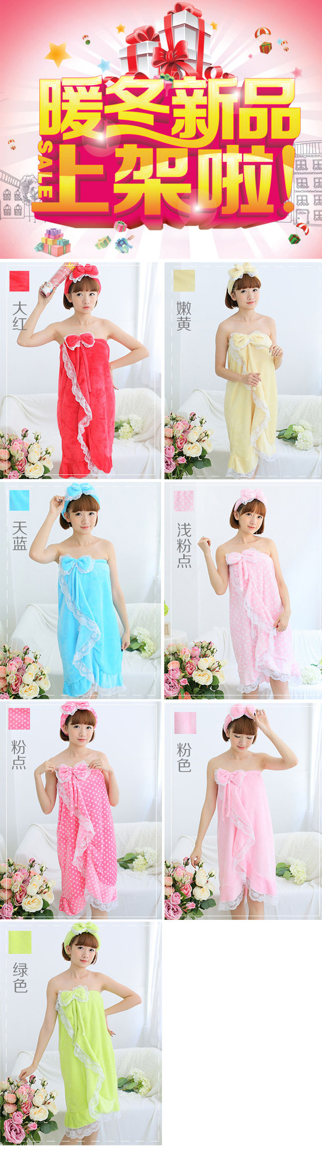 法兰绒柔软蕾丝边女士浴裙浴袍