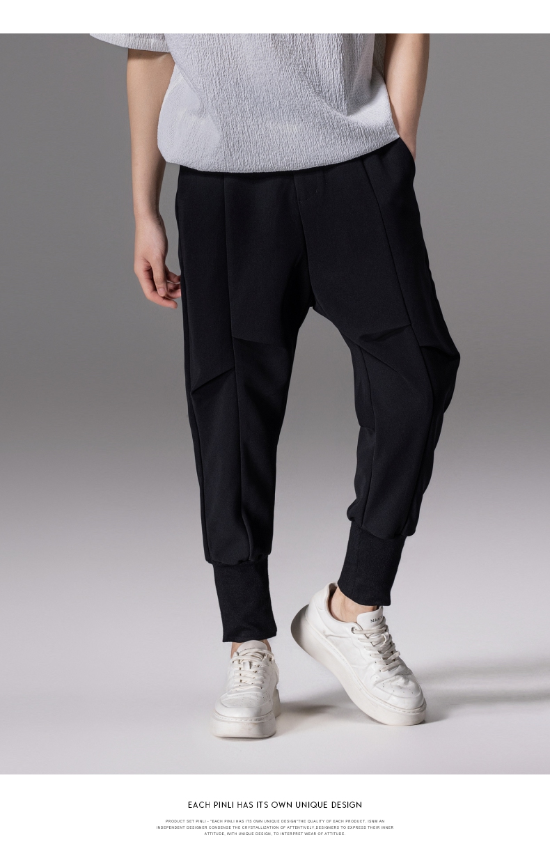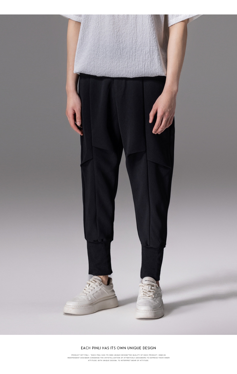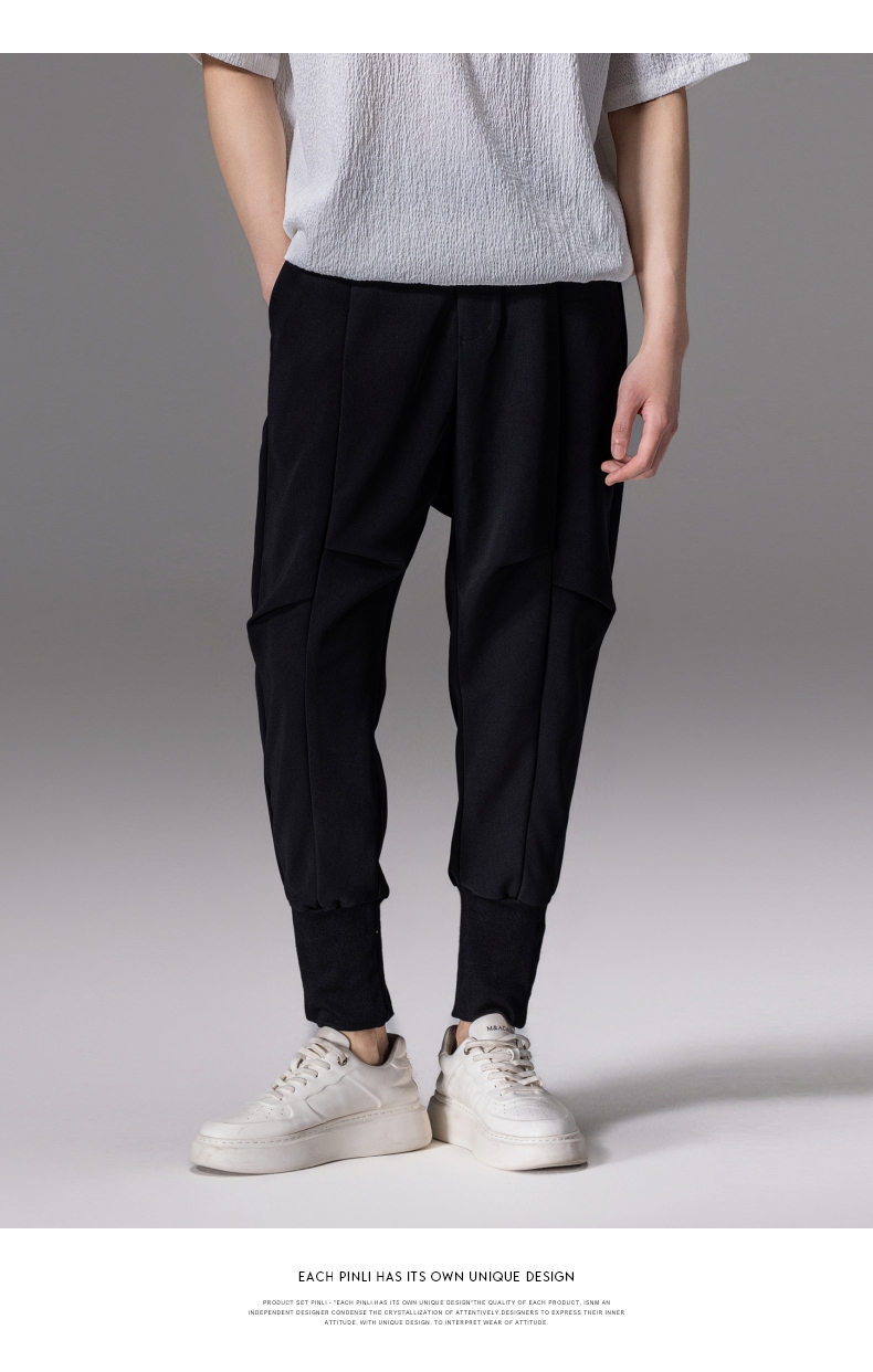PINLI品立2024夏装新品束脚裤男装百搭哈伦裤休闲裤长裤小脚裤子B233117017