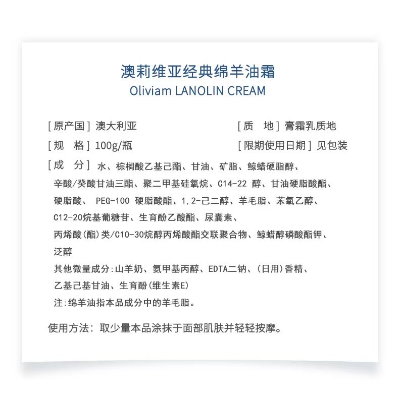 不油不腻,澳洲经典“绵羊油”面霜|Oliviam/澳莉维亚 绵羊油面霜 100g/瓶