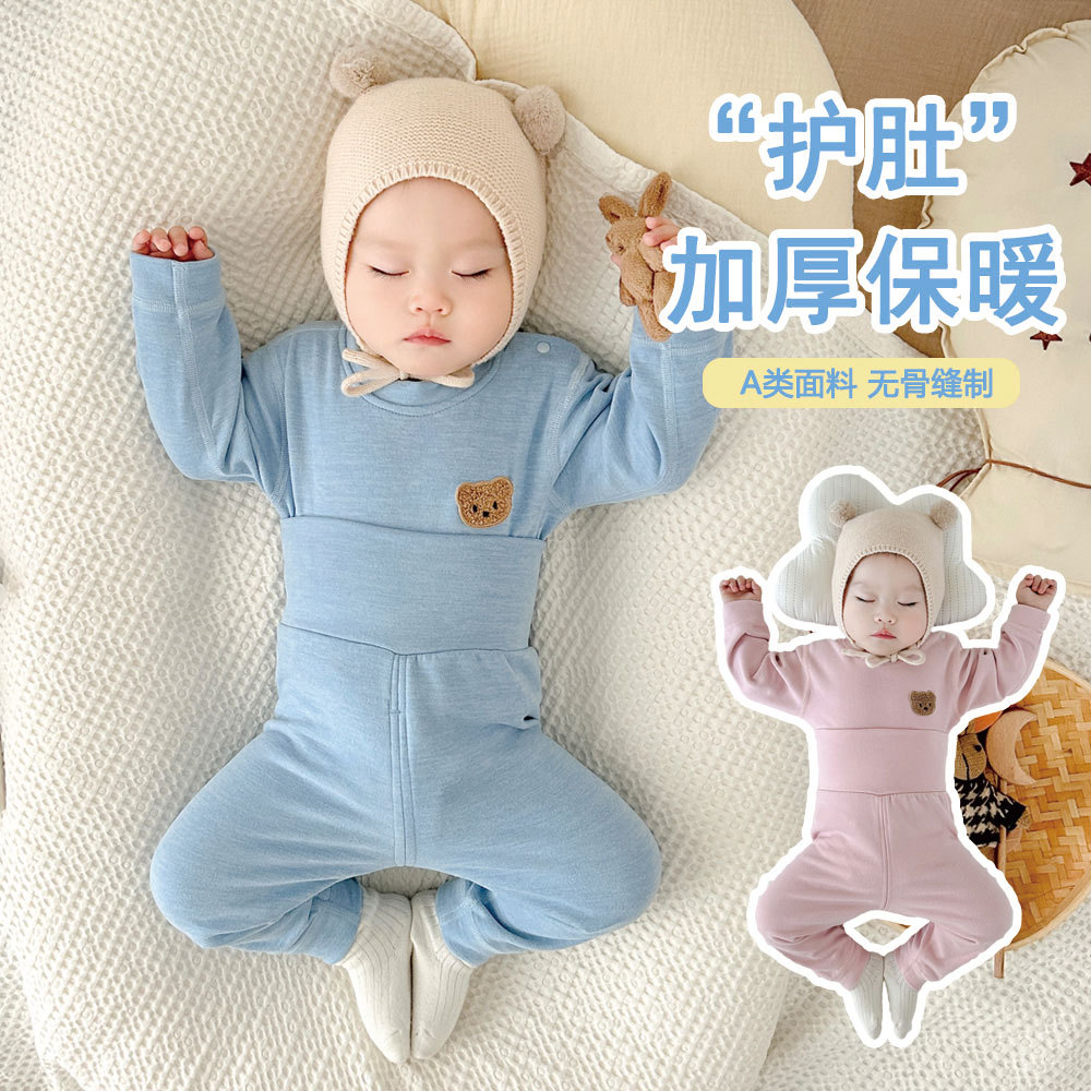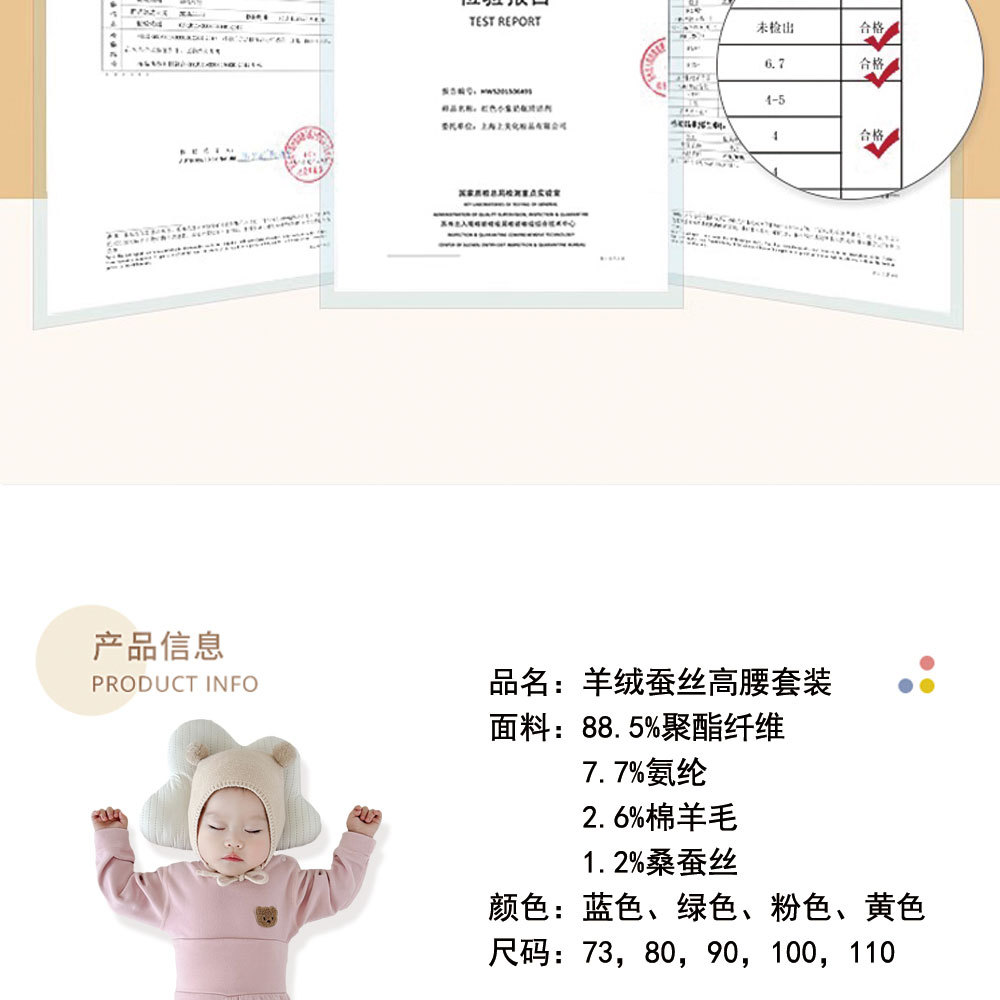 【温暖由内而外柔软舒适不臃肿】 婴儿贴身睡衣秋冬款护肚内衣宝宝内衣羊绒蚕丝分体秋衣套装