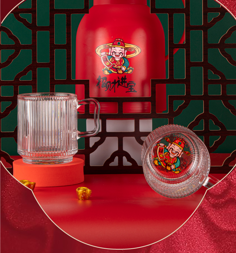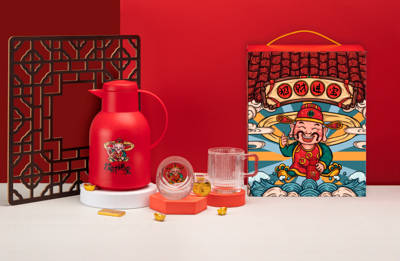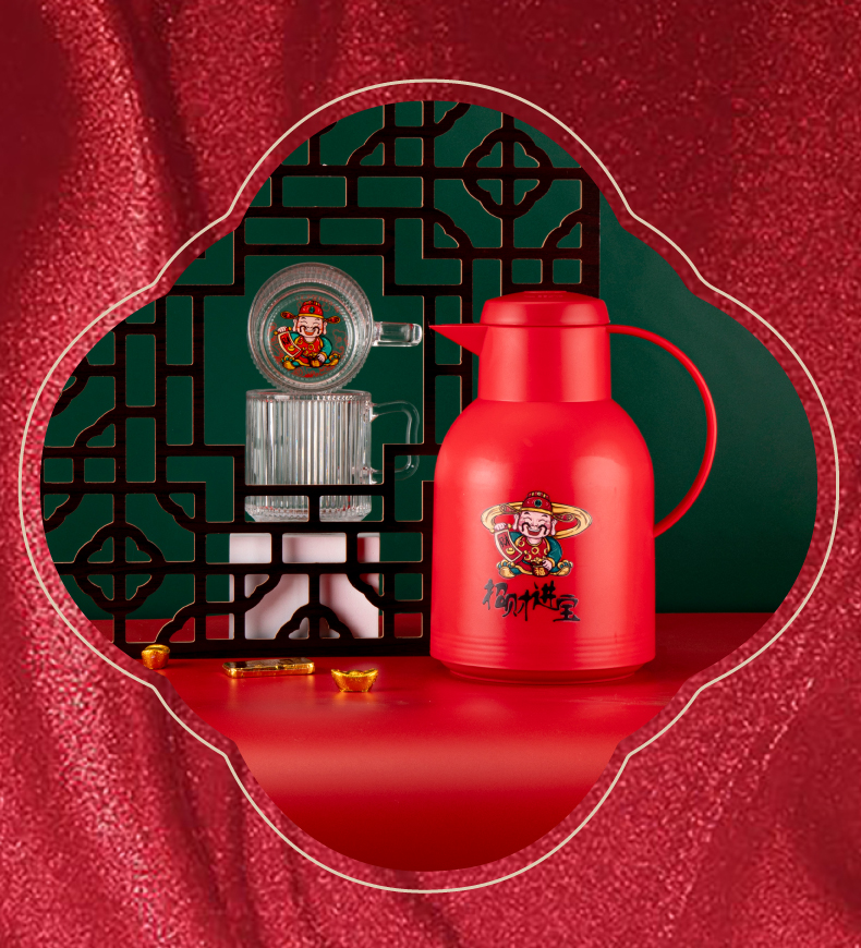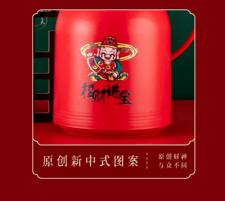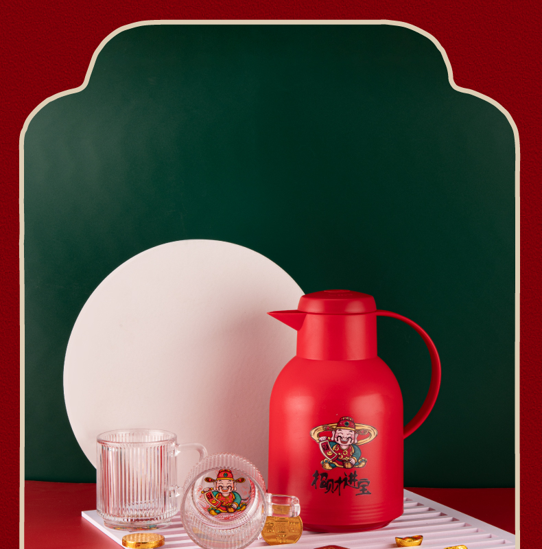 山重山保温壶水杯套装商务礼品送客户年会奖品礼物家用暖壶大容量开水保温瓶玻璃内胆办公室可定制 财神壶单壶